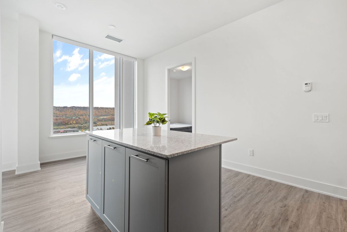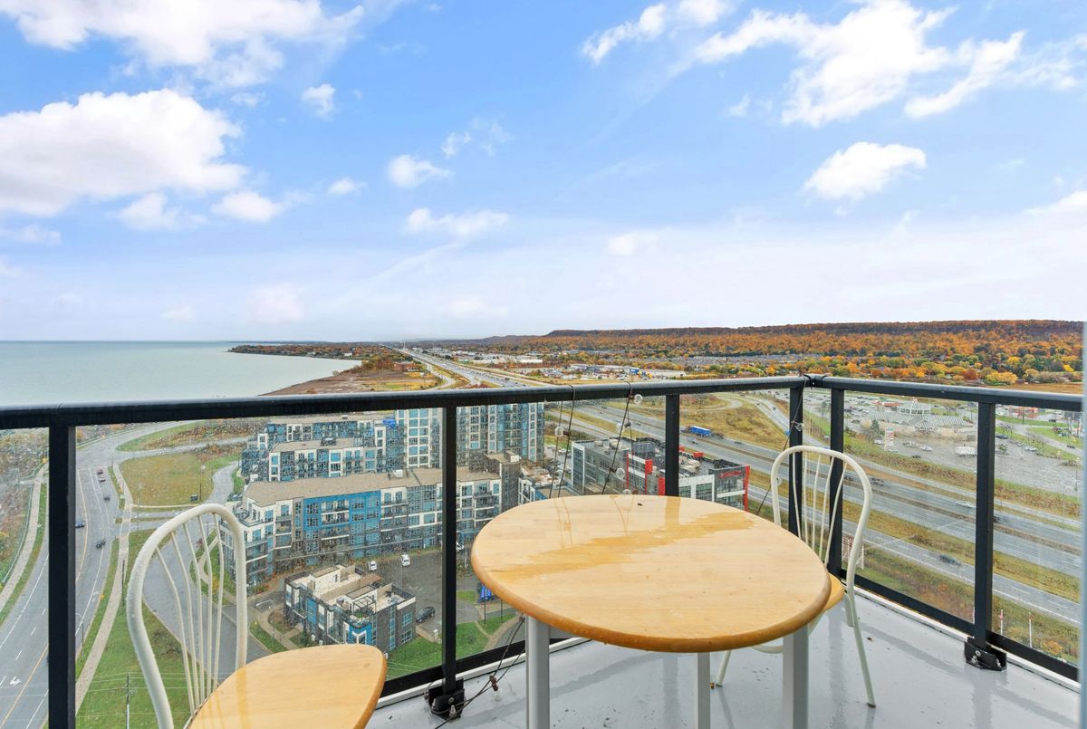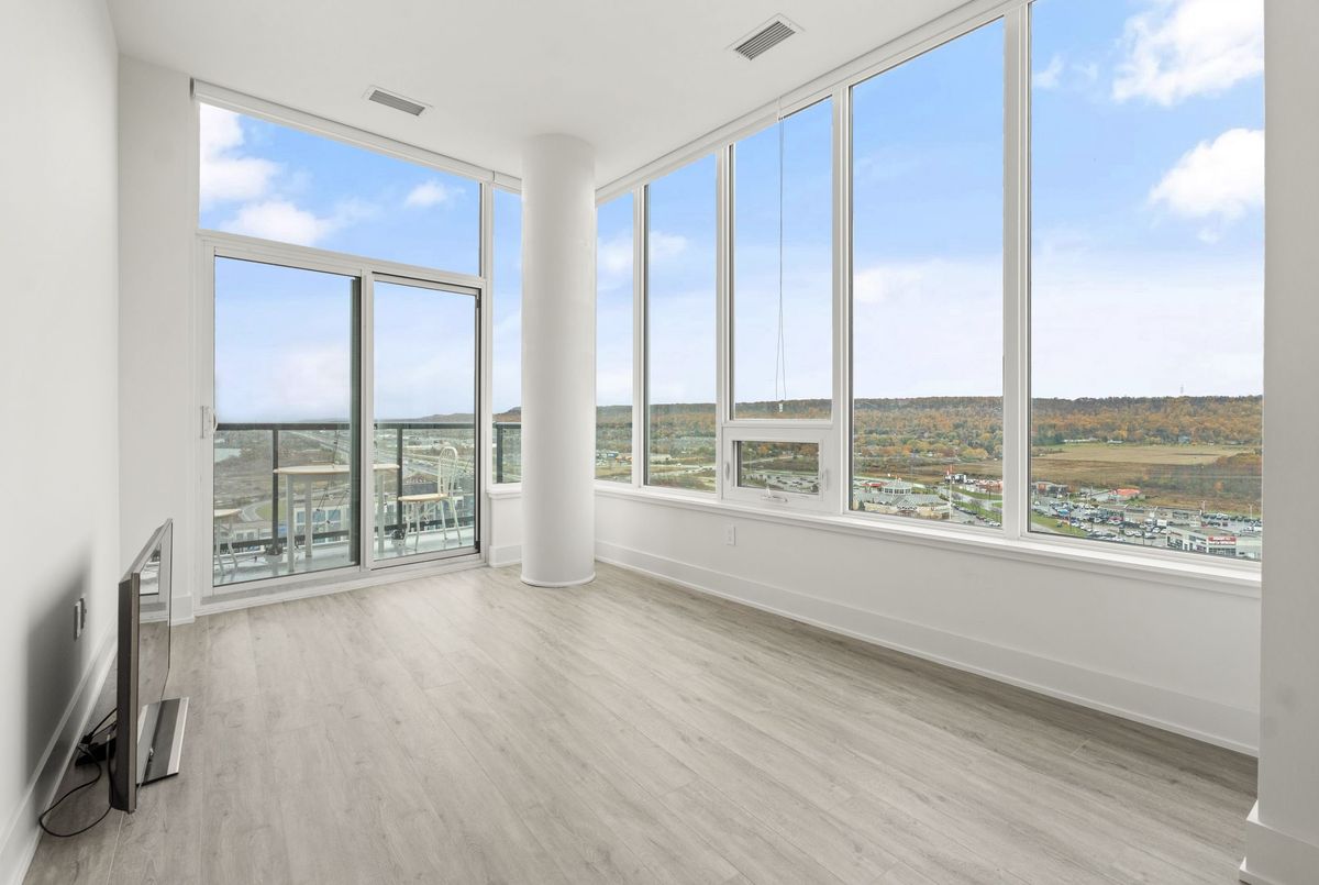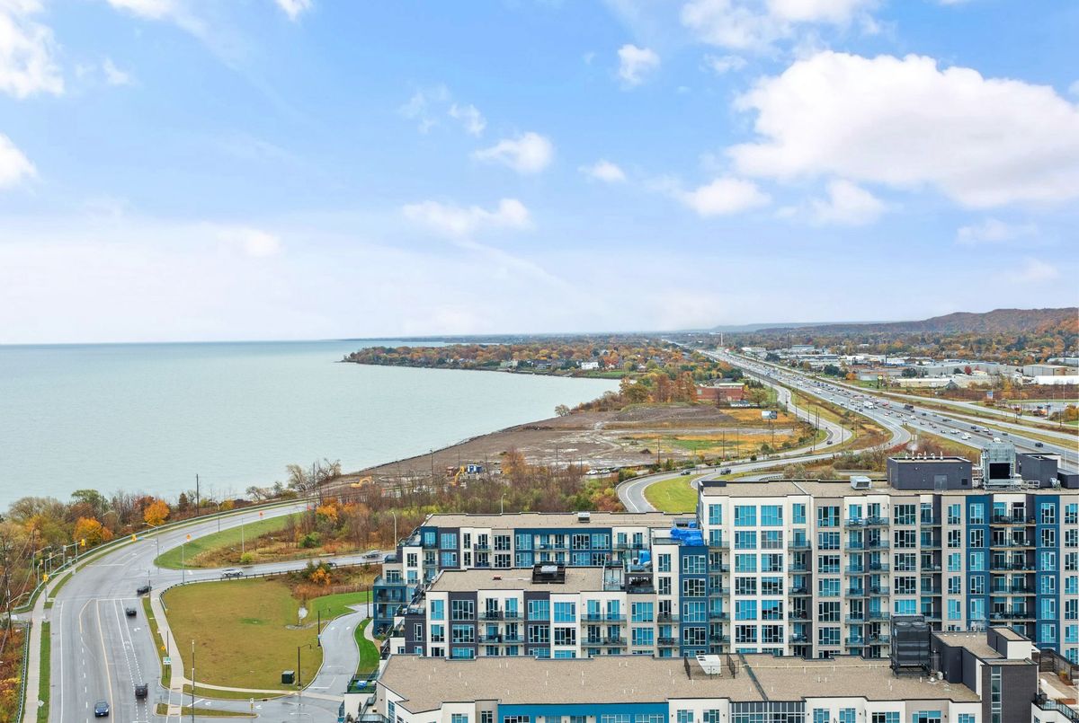 Welcome to refined penthouse living by the lake. Perched on the 19th floor in the sought-after Grimsby on the Lake community, this stunning 2-bedroom suite showcases breathtaking views of Lake Ontario and the Niagara Escarpment. Designed with both comfort and sophistication in mind, the open-concept layout is highlighted by soaring ceilings and expansive windows that flood the space with natural light. The contemporary kitchen features stainless steel appliances, quartz countertops, and a generous island perfect for entertaining or casual dining. Step onto your private balcony and take in the ever-changing backdrop of water, sky, and seasonal colour - an ideal extension of your living space. This unit also offers the convenience of in-suite laundry, one underground parking space, and a storage locker. Residents enjoy premium building amenities including a fitness and yoga studio, rooftop terrace with outdoor kitchen, bike storage, and more. Just steps from waterfront trails, local cafés, restaurants, and boutique shops, this is lakeside living at its finest. Book your private showing today! *All photos were taken when the unit was vacant*