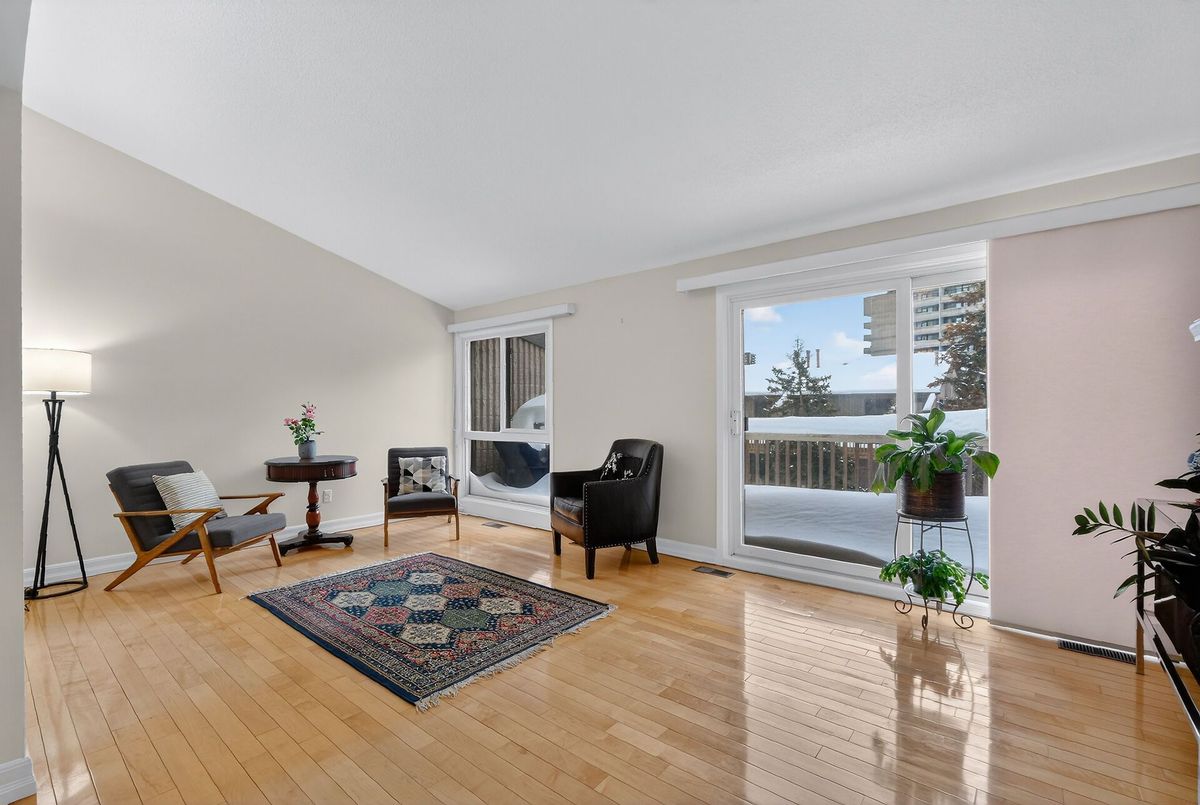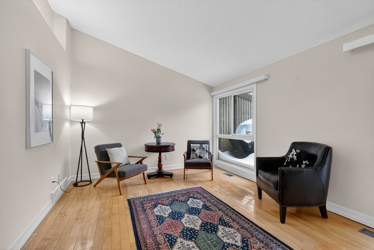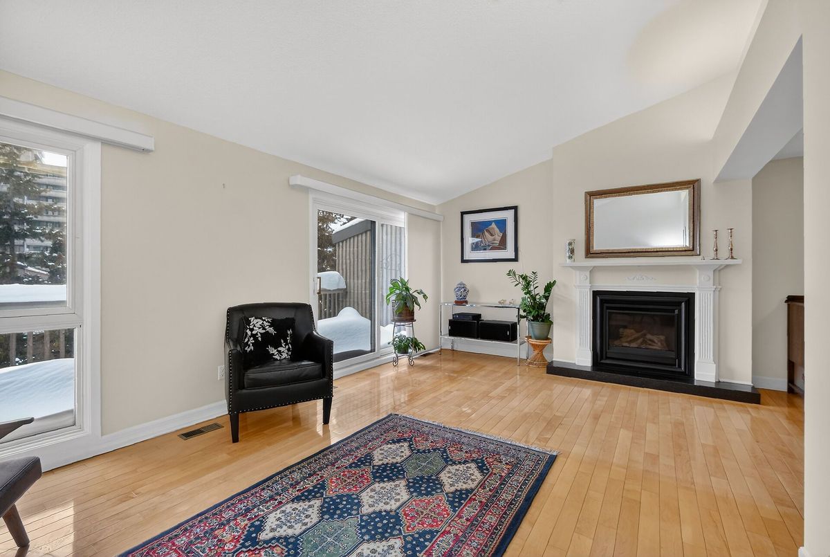 Discover this rarely offered, beautifully maintained 3 bed, 2.5 bath condo townhome in Ottawa's established Ambleside community. This spacious home offers comfortable living with exceptional access to nature along the Ottawa River.The main level welcomes you with a bright entry & versatile den, ideal for a home office or quiet retreat. The modern kitchen features ss appliances, a large island, & plenty of storage. The kitchen flows seamlessly into the bright & open dining/living, perfect for everyday living or entertaining. Flooded with natural light, the living room showcases an updated gas fireplace, hardwood floors, and cathedral ceiling. Large windows overlook mature trees, & a private balcony provides a peaceful setting to enjoy your morning coffee or unwind at the end of the day. This level also includes a convenient laundry/half bath. The spacious primary bedroom retreat, complete with ensuite & generous closet space. This level also offers direct access to underground garage parking for everyday convenience. The lower level has two additional spacious bedrooms, a full bath, with patio door access to the private outdoor space. Freshly painted throughout in 2026.The basement provides dedicated workshop & abundant storage space. Residents enjoy a rich calendar of activities including clubs & social events. 1st class amenities include an indoor salt water pool, sauna, a state of the art gym, car wash bay, beautifully appointed party room w/ full kitchen, wood work shop, & guest suites for visitors. Condo fees offer exceptional value and include high speed internet, cable, heat, hydro, water, and caretaker services. Dogs under 25 lbs are permitted.This meticulously maintained building boasts an excellent reserve fund, offering peace of mind & long term value. Step outside to explore scenic pathways along the Ottawa River Parkway, or take a short walk to nearby shops & restaurants, all while enjoying the perfect balance of riverside living and urban convenience.