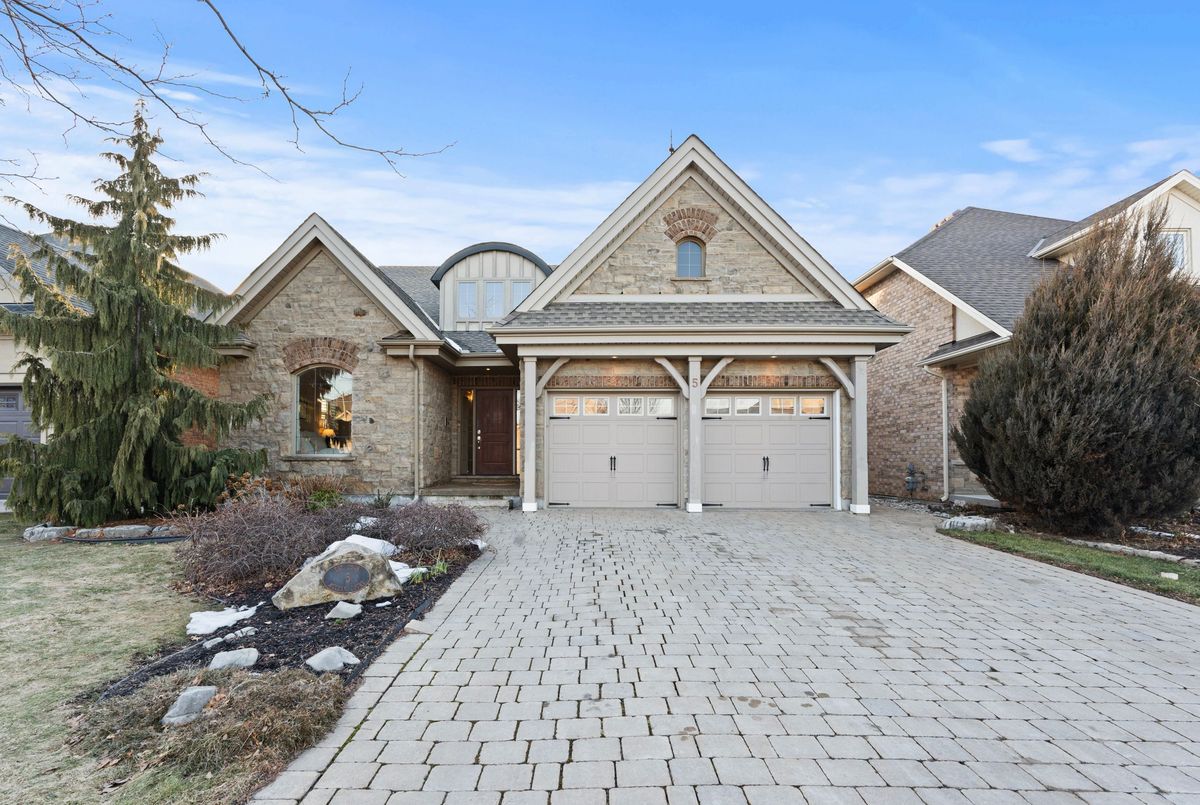 Architecture like no other. Beautiful stonework and timber beams create a striking presence and exceptional curb appeal. Located on a quiet cul-de-sac in the highly desirable Martindale neighbourhood, this bungalow offering just over 1,700 sq ft welcomes you with soaring cathedral ceilings and a bright airy interior. The main floor offers two bedrooms including a versatile front bedroom that can also function as a secondary living space or office. This room features ensuite privilege to a three piece bathroom finished with quartz countertops and a tiled shower. Further down the hall you are welcomed by a stunning open concept kitchen, living and dining area highlighted by dramatic cathedral ceilings. The kitchen features an abundance of cabinetry, granite countertops and stainless steel appliances. The living room features a beautiful gas fireplace with custom stonework and craftsman style window and door casings. Just off the main living area is the primary bedroom complete with a walk-in closet and private four piece ensuite. The main floor is finished with a convenient laundry room and interior access to the double car garage. The fully finished lower level offers an impressive rec room with custom shelving and pot lighting, two additional bedrooms, a three piece bathroom and two large storage rooms. Outside, the backyard has been beautifully landscaped with armour stone surrounding a spacious interlock patio, creating a welcoming outdoor space for relaxing or entertaining. A rare opportunity in one of St. Catharines' most sought after neighbourhoods.