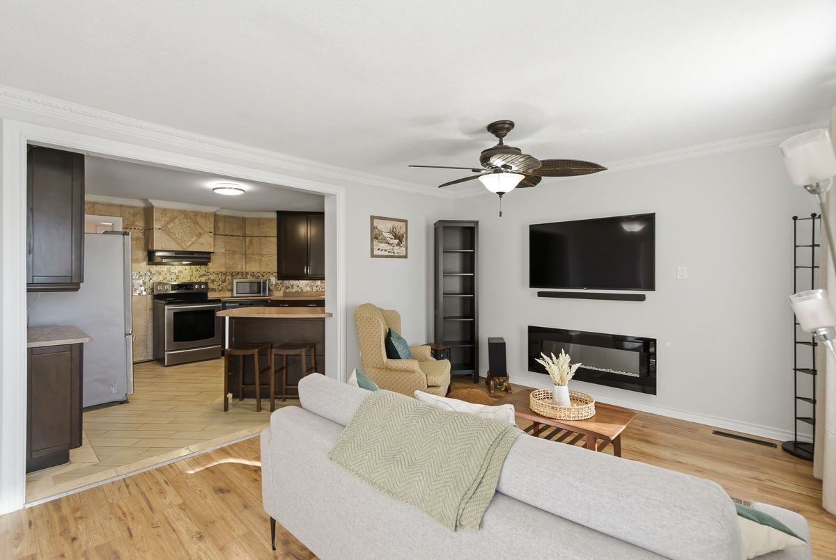 Welcome to this well cared for detached bungalow in central St. Catharines offering just over 1,000 sq ft of comfortable main floor living. This charming home features three bedrooms and a spacious five piece bathroom, making it an excellent option for first time buyers, downsizers or investors. A newer asphalt driveway provides parking for two or more vehicles. Inside, the bright open concept layout creates a welcoming atmosphere. The living room features an electric fireplace with a sleek mounted television and sound bar. The kitchen is very functional with stainless steel appliances, plenty of cabinetry and a convenient breakfast bar overlooking the living area. Just off the main living space is a versatile bedroom currently used as a home office. Toward the back of the home you will find the spacious primary bedroom with double closets along with a generously sized third bedroom. The large laundry room offers direct access to both the backyard and the driveway and sits beside the well appointed five piece bathroom. While the home does not offer a full height basement, a staircase from the laundry room leads to a utility and storage area with approximately five foot ceilings that houses the furnace and mechanical systems. Step outside to enjoy the fully fenced backyard featuring a freshly painted deck with pergola, a large grassy area, fire pit and two garden sheds. Located close to shopping, schools and quick highway access, this home offers both convenience and great value in a desirable St. Catharines location.