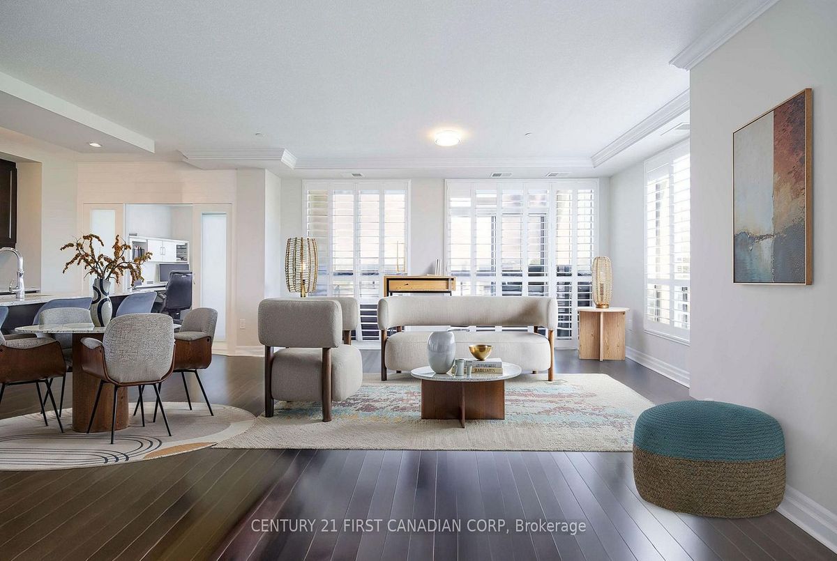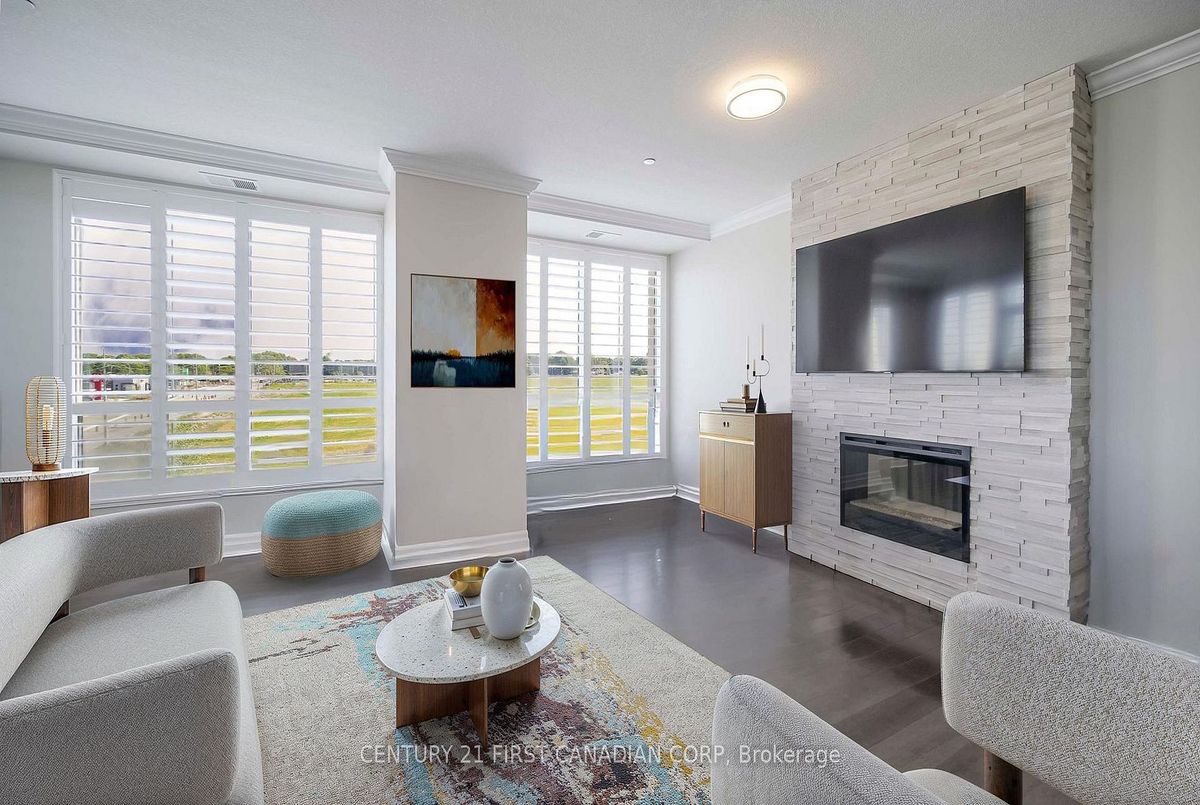 Experience elevated living in this bright corner unit, showcasing panoramic views and dramatic walls of windows that flood the space w/natural light. Upgraded California shutters throughout provide complete privacy with a touch of class. Rich hardwood flooring flows seamlessly throughout, creating a warm yet sophisticated ambiance, w/the flooring-to-ceiling stone fireplace being the focal point of the great room. Designed for both everyday living and elegant entertaining, the gourmet kitchen features an island w/seating for four, complemented by two expansive pantry spaces for ultimate convenience. A versatile flex space provides endless possibilities - perfect as a private home office, formal dining room, third bedroom or an intimate reading retreat. Extend your living experience outdoors w/a beautifully appointed balcony, complete with a retractable glass enclosure and wood flooring - transforming the space into a year-round sanctuary and seamless extension of your living space. The private primary suite is a true escape from a busy day, featuring a spacious walk-in closet and a spa-inspired ensuite with a frameless glass shower and a luxurious soaker tub. A designated foyer sets the tone for the home's elegant flow, while additional features include generous closet space throughout, a new washer and dryer, 2 owned underground parking spaces right by the elevator and a large private storage locker. As part of this prestigious Tricar development, residents can enjoy access to premium amenities including an indoor salt water pool, golf simulator, fitness centre, billiards/lounge, dining room, theatre room wiwet bar, guest suite and quiet common spaces. Conveniently located just a short drive or pleasant walk to Masonville Mall, dining and grocery stores, steps away from Sunningdale Golf and Country Club and walking trails. While being only a short distance from University Hospital and Western University, this condo is a perfect blend of comfort, style and location.