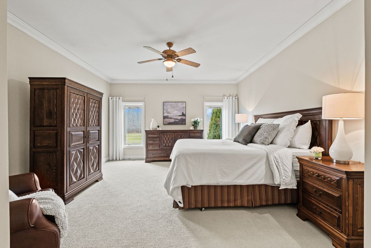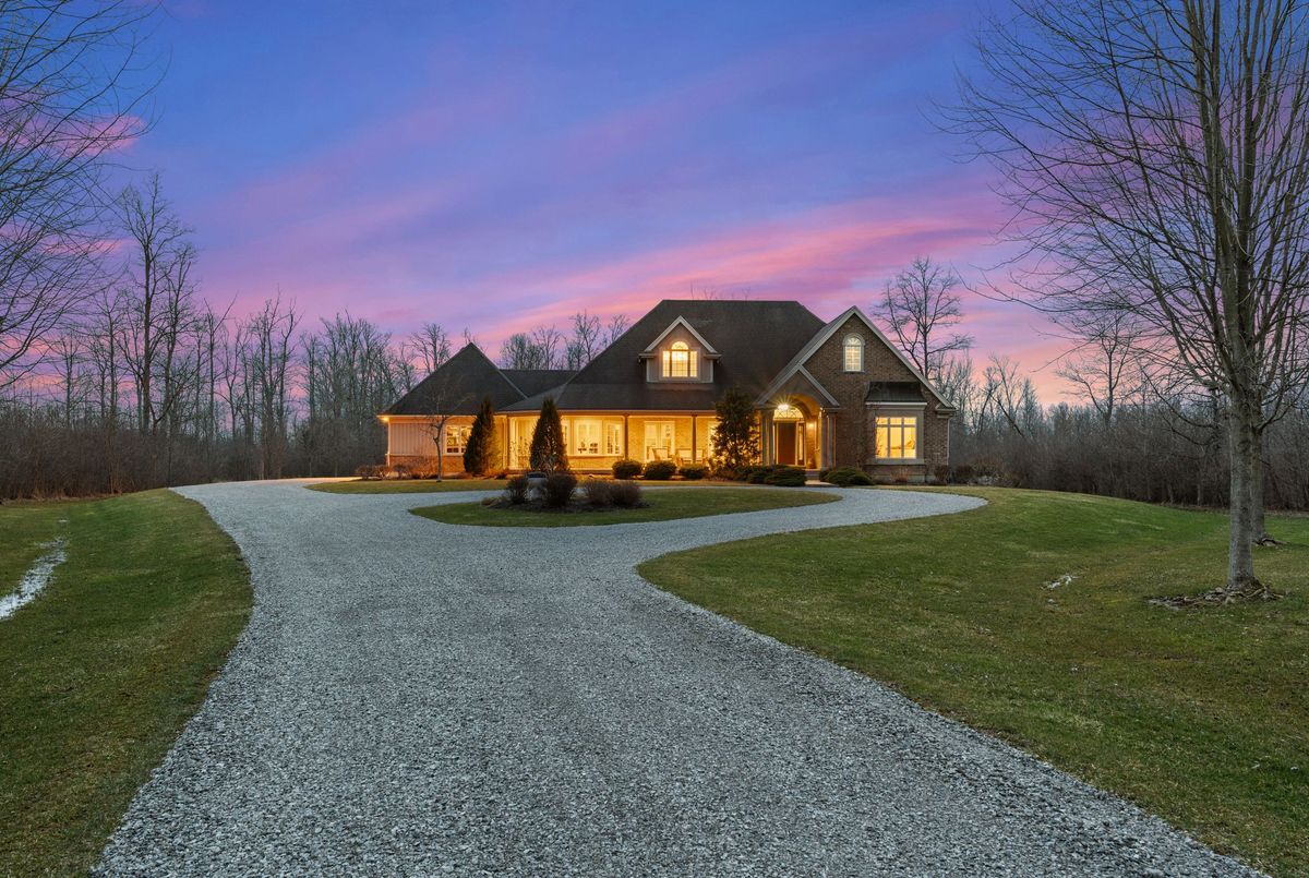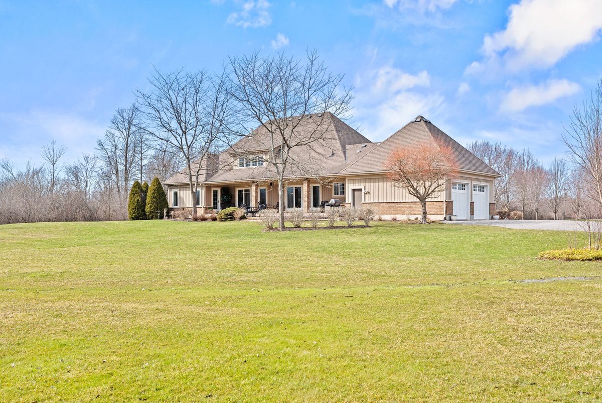 Imagine waking up to pure serenity everyday. When you're here, it feels like the rest of the world doesn't exist and that is exactly what makes this home so special. Set on just under 12 acres, this property offers a level of privacy that is rarely found. The home disappears from the road through the trees creating a setting that feels completely secluded. An expansive winding driveway leads to a stately bungalow with an oversized covered front porch. Inside, a bright foyer opens with sightlines through to the backyard that showcases the scale and natural surroundings. The living room features cathedral ceilings and a floor to ceiling stone fireplace with gas insert. This space flows into a formal dining area surrounded by windows that bring in natural light and views of the back yard. The kitchen is intentionally separated from the primary living space allowing you to enjoy the main living areas without the noise or activity of a busy kitchen carrying throughout the home. Complete with eat in dining, island seating and stainless steel appliances, it also offers a panoramic view over the front grounds. A lofted upper level provides flexible space for a home office or additional lounge overlooking the main floor. The primary suite overlooks the backyard and includes a walk in closet and five piece ensuite, while a second bedroom and four piece bathroom are positioned down the hall. Main floor laundry offers storage and direct access to the oversized double car garage. The lower level features a rec-room with new carpeting, pot lighting and gas fireplace, along with an oversized bedroom with ensuite privilege to a two piece bathroom with rough in for a future shower/tub. Three additional storage and workshop areas complete this level. The grounds offer expansive yard space along with a mature forest and private walking/ATV trails. Located minutes to Bay Beach, Sherkston Shores, Niagara Falls and all other amenities.