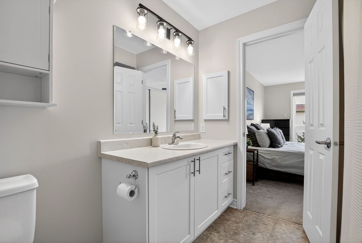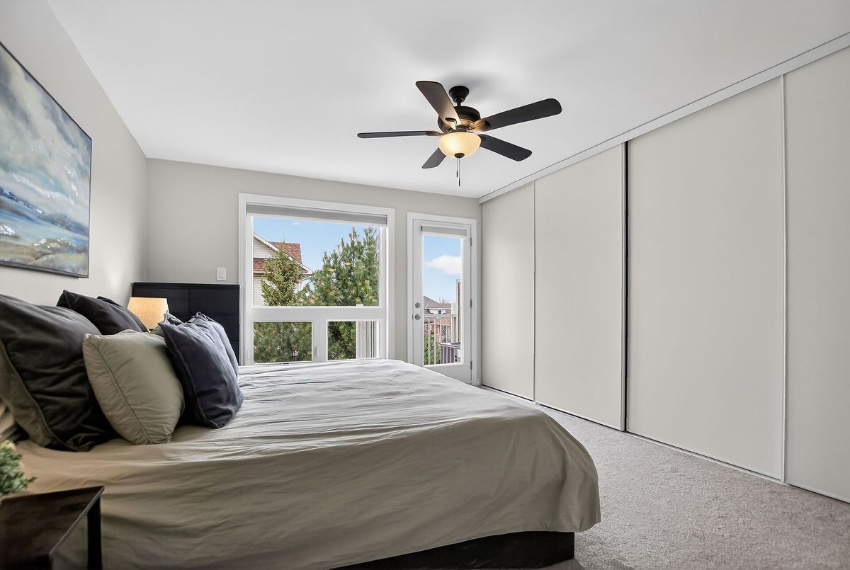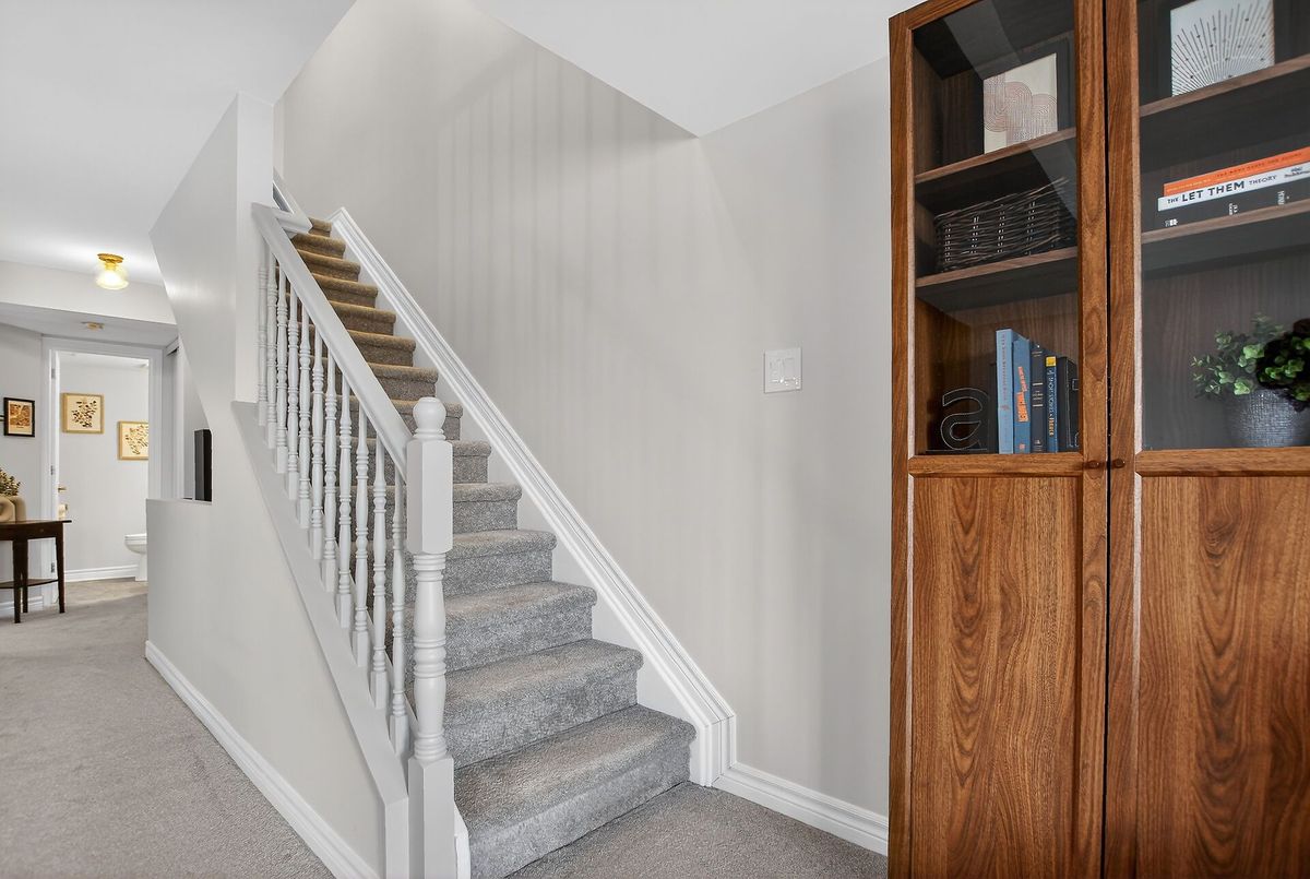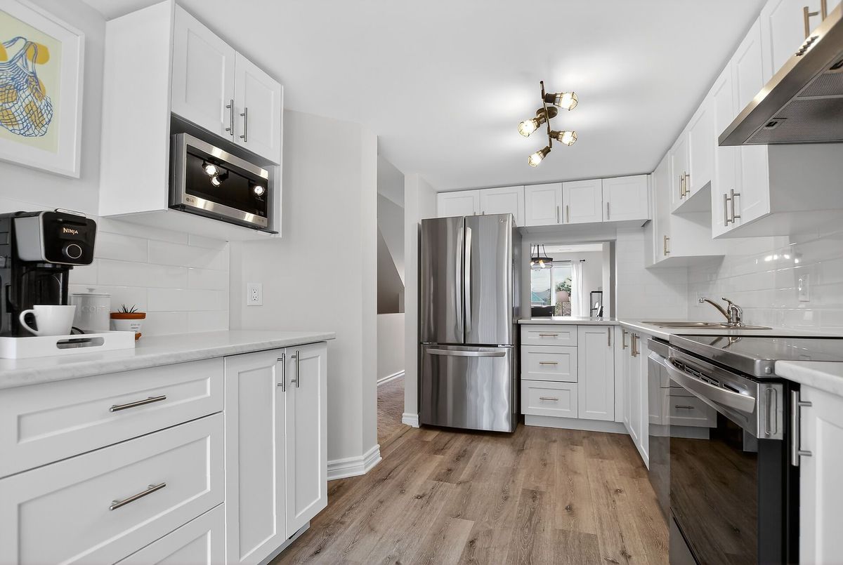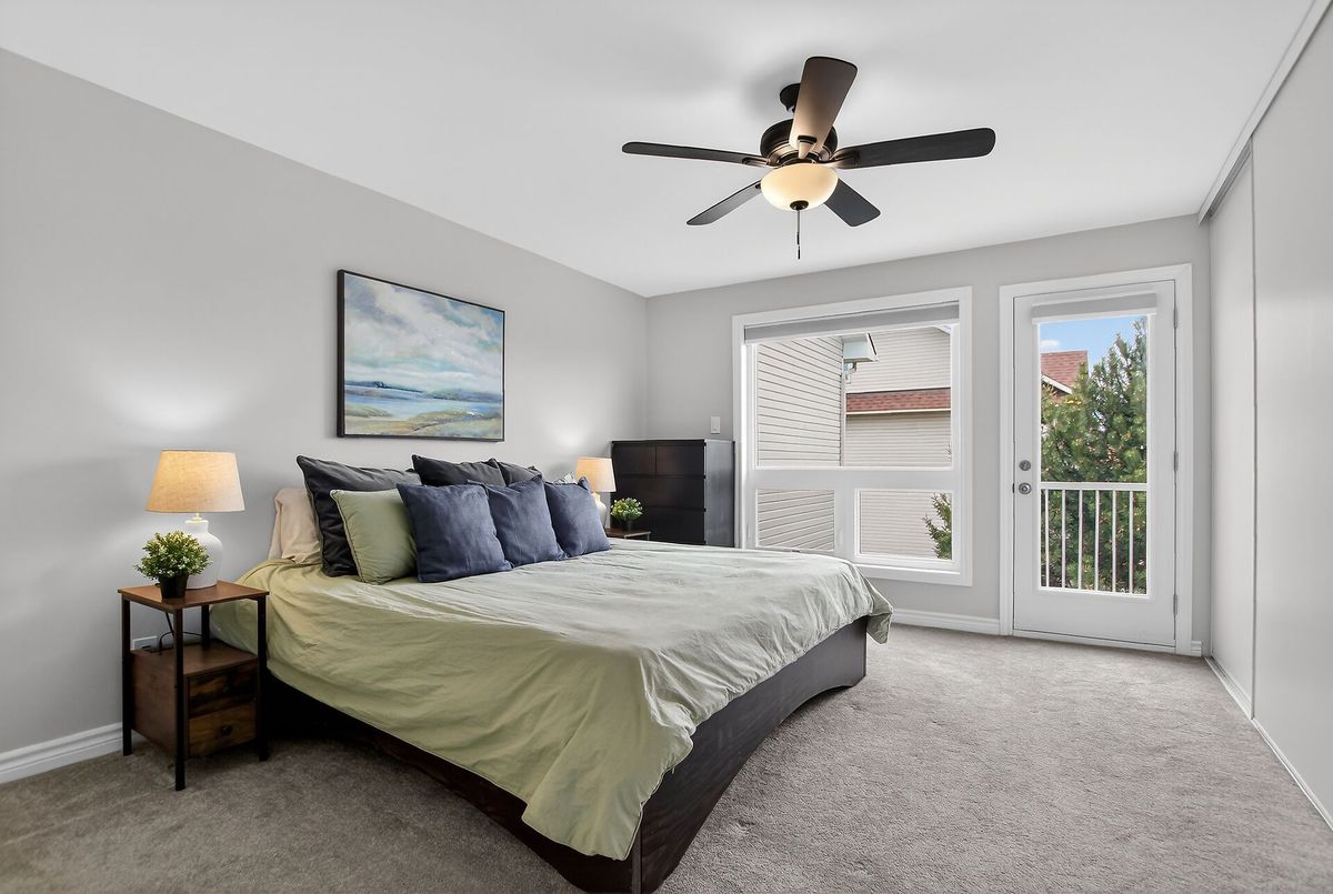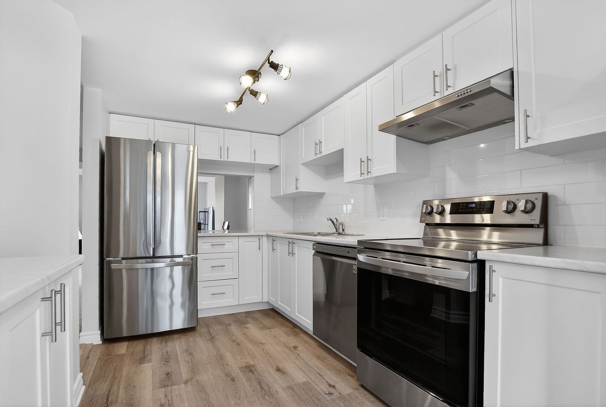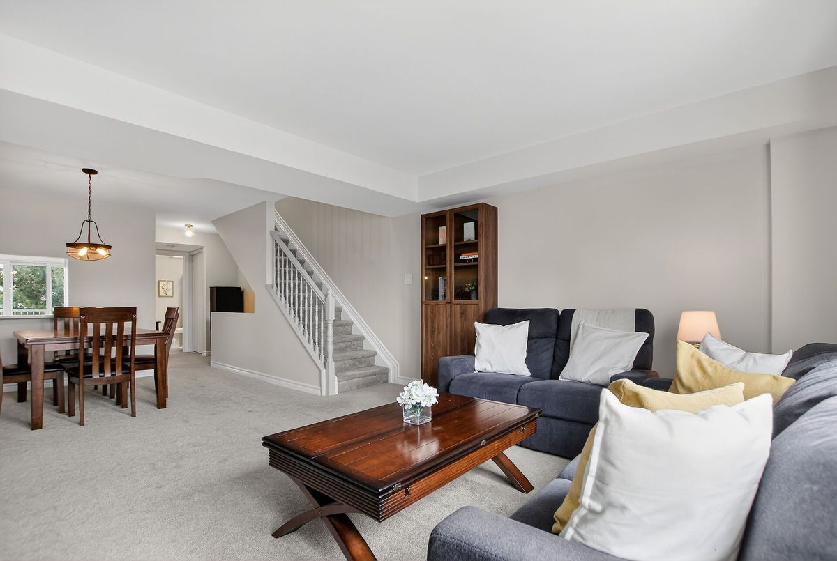 Why rent when you can own? This affordable stacked townhome, with low monthly costs, is a smart step into homeownership and a powerful way to start building equity. And what's even better? It's completely renovated with beautiful updates from top to bottom. The open concept main level flows seamlessly from the light-filled living room into the dining area. A stylish kitchen anchors the space with white cabinetry, a generous walk-in pantry for small appliances and dry goods, a dedicated coffee bar, and a casual eating area perfect for starting the day. A balcony extends the living space, offering a spot for summer grilling or enjoying coffee beside a mature tree that provides natural privacy. Upstairs, the spacious primary bedroom features its own private balcony, a full wall of closets, and access to a cheater ensuite. A bright second bedroom offers flexibility for guests, children, or a home office. A large laundry room also provides excellent storage. Major updates completed in 2023 include a new furnace, air conditioning, flooring, rear windows, and patio door. Close to shops, cafés, gyms, transit, and commuting routes. Don't wait to book a visit!!