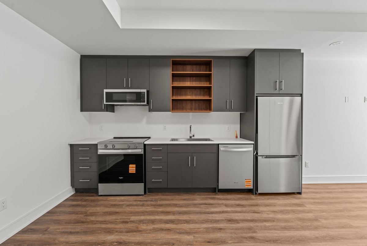 Brand new, never-lived-in condo townhome available for lease in a modern, low-maintenance community. The main floor welcomes you with a bright open-concept layout featuring a contemporary kitchen with stainless steel appliances, spacious living area, convenient 2-piece bathroom, multiple closets for storage, and attached garage access for everyday convenience. Upstairs offers stacked laundry just outside the bedroom, plus a versatile den ideal for a home office or study space. The bedroom includes two additional closets and a private ensuite with a tub/ shower feature, creating a comfortable and functional retreat. Enjoy easy access to highways and public transit, with shopping and everyday amenities just minutes away including The Pen Centre, Walmart, Zehrs and more. Perfect for tenants seeking modern, convenient living.