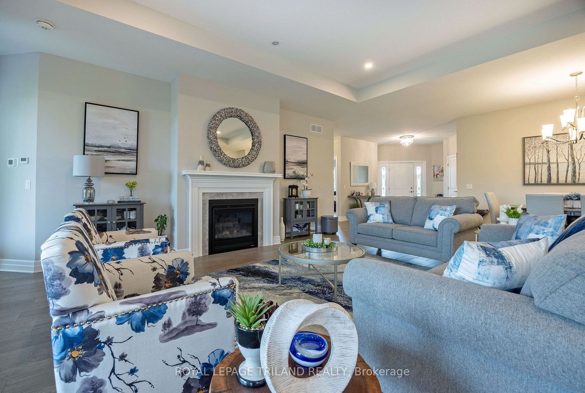 Welcome to this stunning bungalow nestled in the prestigious 50+ gated community at Riverbend Golf Course. This nearly new home, less than a year old, offers modern luxury and classic charm. With two spacious bedrooms and a versatile den, i's perfect for a home office or extra guest space. The two full bathrooms feature modern fixtures and finishes. The heart of the home is the beautiful classic white kitchen, quartz counter tops, and ample cabinet space. The cozy living room, with a gas fireplace, provides the perfect spot for relaxing evenings. Step outside the oversized back deck ideal for outdoor dining and entertaining. The community offers top-notch amenities, including a clubhouse with indoor and patio dining overlooking the golf course, an indoor pool, a fitness room, and meeting rooms. A variety of activities ensure a vibrant lifestyle. Don't miss this chance to join an exceptional community!