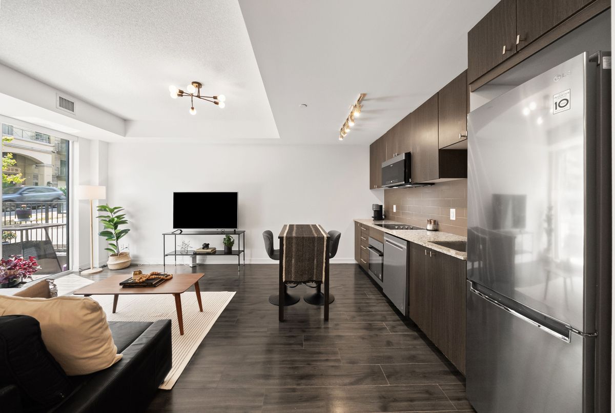 Step into easy living with this spacious and beautifully appointed 2-bedroom, 2-bathroom townhome, with parking and two storage lockers(!), nestled in the heart of Bayview Village! Boasting 1133sqft, this bright and spacious urban retreat offers the ideal combination of modern comfort, stylish finishes, and functional design, in a location that has it all. Step inside to discover an open-concept main floor flooded with natural light from floor-to-ceiling windows and gleaming (and durable) vinyl wood floors, creating an inviting atmosphere perfect for both everyday living and entertaining guests. The open modern kitchen features sleek stainless steel appliances (dishwasher, microwave, and fridge in 2023), elegant stone counters, a chic tile backsplash, and ample cabinetry. A walk-in storage room adds an extra layer of convenience rarely found in condo living, making organization effortless. Upstairs, the generous primary bedroom retreat boasts floor-to-ceiling windows with roller shades, a walk-in closet and a private 4-piece ensuite, offering a peaceful escape at the end of the day. The second bedroom features a double closet and a separate 3-piece bathroom, making the layout perfect for families or guests. Enjoy a private and fully fenced terrace with patio stone, privacy trees, and a gas BBQ hookup with South exposure. Includes indoor and quick access to your underground parking space and two storage lockers. Get the best of both worlds with the carefree and convenient lifestyle of a condo paired with the space and flexibility of a townhouse! Amazing building amenities include concierge, gym, rooftop terrace, party room, visitor parking, bike storage and more! Situated just steps from Bayview Village Shopping Centre, TTC subway, parks, schools, dining, cafes, Yonge & Sheppard amenities, and major commuter routes, this location is as convenient as it is prestigious.