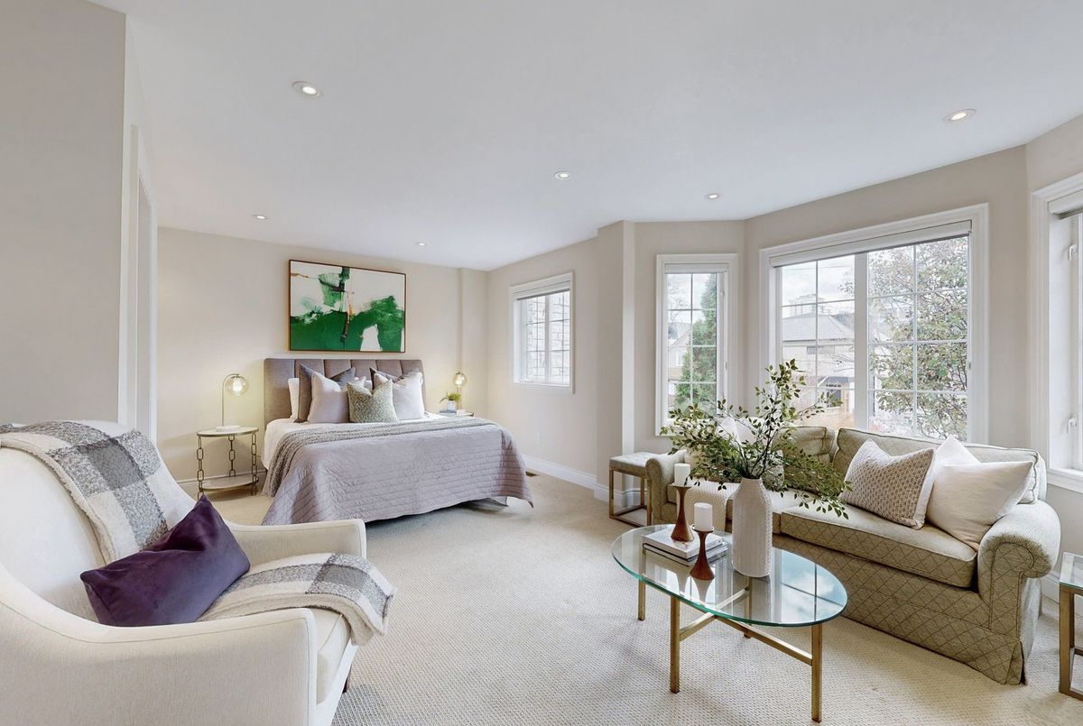 Originally designed as a four-bedroom, this newer 2.5-storey detached home offers remarkable space, smart design, and a layout that truly lives large. With three oversized bedrooms (plus 1 below), five bathrooms, and a family room, there is room here to grow, host, or simply spread out in comfort. The main level features high ceilings, a bright family room, and effortless flow through the living and dining areas. Upstairs, the bedrooms are exceptionally scaled and the top-floor suite provides a quiet, airy escape with cathedral ceilings, oversized windows and treetop views. The lower level with walk-out, adds even more versatility with a large recreation room and a generous guest suite or additional bedroom, ideal for extended family or flexible use. A detached garage, quiet street setting, and a location just one block from Yonge-perfectly positioned between Davisville and Eglinton Stations-complete this standout home in a coveted Midtown pocket.