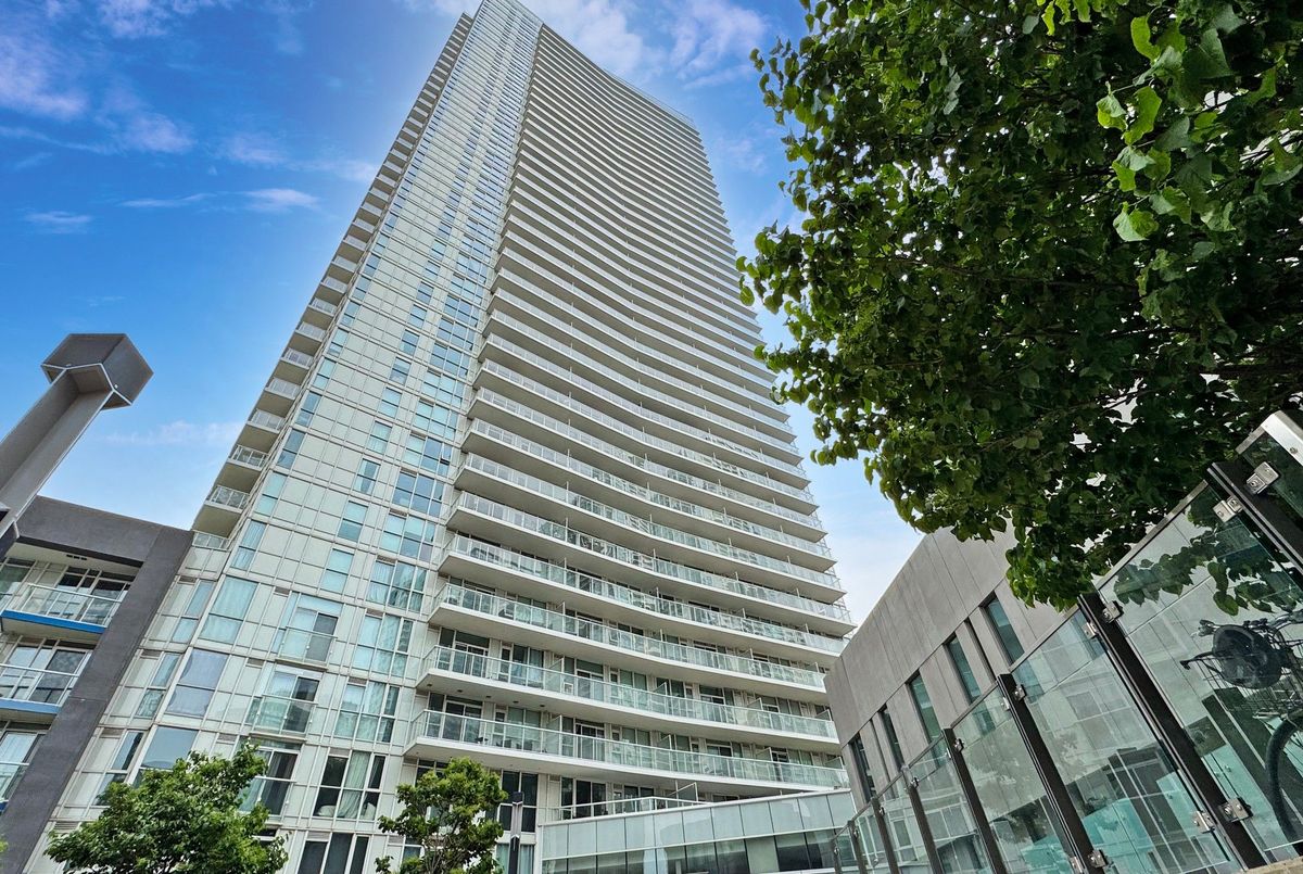 One of Toronto's best views with truly unforgettable sunsets. This upgraded 1 bed 1 bath private corner suite is all about light, style, and panoramic Lake Ontario views. With south and west facing floor-to-ceiling windows, the space is drenched with natural light and framed by epic city and water views. 673 sq ft including large balcony that extends your living outdoors, perfect for watching the boats float by. Move-in ready with upgraded wide plank hardwood floors throughout. Kitchen is sleek with stainless steel appliances, tile backsplash, and bonus reverse osmosis water system for pure hydration. Oversized bedroom can easily accommodate a home office setup and includes a custom closet organizational system. Dual bathroom access from bedroom + living and updated with a modern glass enclosure and ensuite laundry (never been used washer & dryer). Extras include parking (close to the elevator), locker and smart Ecobee thermostat. Enjoy being steps from restaurants, parks and scenic waterfront trails. Walk to Loblaws, Farm Boy, LCBO, The Well and countless shopping and dining options. Top tier building amenities: fitness center, indoor pool, hot tub, sauna, BBQ rooftop terrace, and 24/7 concierge. Easy access to the TTC, Gardiner, 5 mins to Rogers Centre. Bright, upgraded, modern - with a view you'll love.