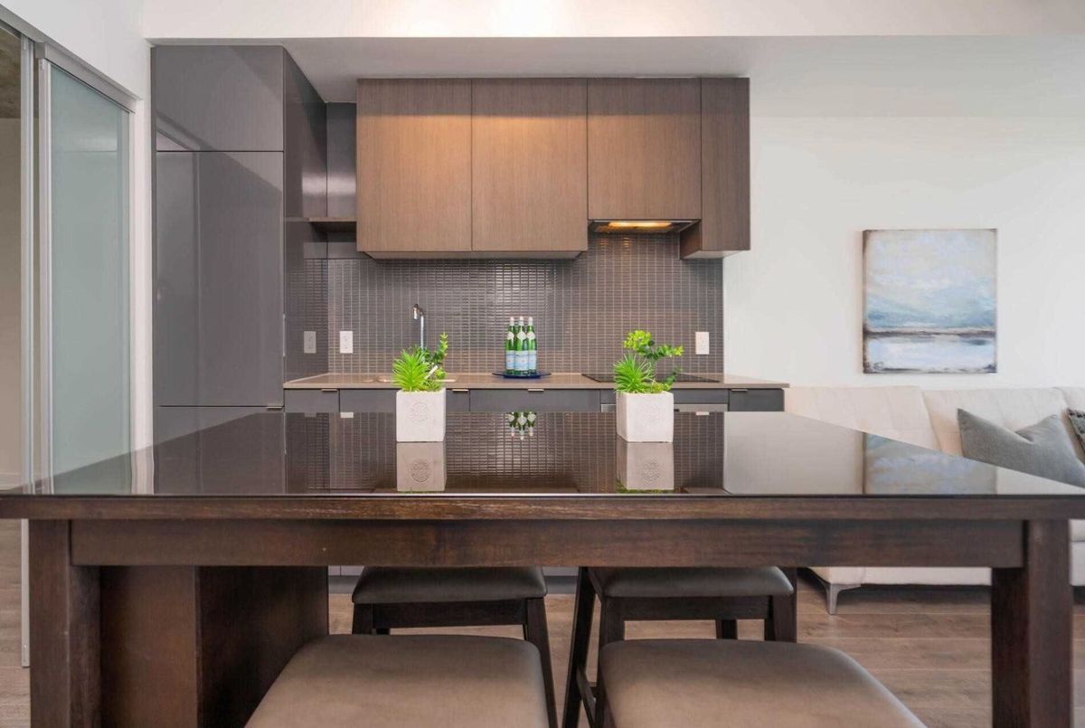 Furnished Stunning 2bedroom plus 2washrooms with a total of 830 sqft of living space ( 714 sqft interior + 116 sqft balcony) and breathtaking views of the city and lake. Featuring 9ft smooth ceilings and extra-long balcony, this suite is the perfect blend of style and comfort. Premium finishes include quartz countertops, integrated appliances, a cooktop stove, and wide-plank laminate flooring. Custom roller shades provide privacy and elegance. One Parking Spot included Located steps to transit, subway, shops, cinemas, schools, parks, and restaurants, this suite offers convenience at your doorstep. Enjoy an amazing view and access to hotel-style amenities including cabanas, and outdoor pool, hot tub, spa, BBQ area, gym, And Billiard/Party Room