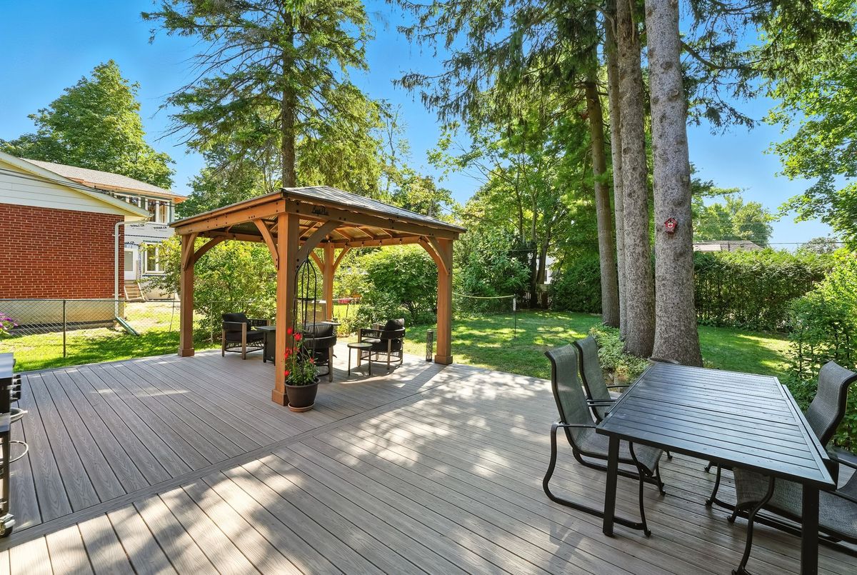 Discover a rare opportunity to own a beautifully appointed home in one of Ajax's most desirable neighbourhoods. Tucked at the end of a quiet cul-de-sac, this property offers the perfect balance of comfort, style, and community living. Steps from scenic nature trails, tennis courts, playgrounds, a fenced dog park, and more, 47 Sherwood Road E is designed for families who value both convenience and lifestyle. Set on a premium 66 x 157 ft lot, this exceptional residence blends timeless charm with modern upgrades. The heart of the home is a chefs kitchen with quartz countertops, wall-mounted ovens, and a Wolf gas stove refined finishes that are perfect for everyday meals or elegant entertaining. Upstairs, the primary suite features a private dressing room and an ensuite with his & hers sinks. A separate entrance leads to a private in-law suite, ideal for multi-generational living or extended guests. Outdoors, enjoy mature gardens, a large composite deck, gazebo, and generous space designed for relaxation or family gatherings.