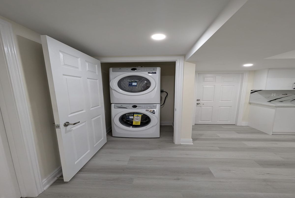 Welcome to this stunning one-year-old basement suite featuring two bedrooms, two bathrooms, and a den. The layout is thoughtfully designed, showcasing a modern kitchen complete with a breakfast bar. You'll appreciate the spacious closet, ensuite laundry, and an abundance of natural light throughout. The backyard opens up to beautiful green space and trees, providing a serene view.This home is served by five public schools and four Catholic schools, with nine of these schools having designated catchment areas. Additionally, there are two private schools located nearby. Within a 20-minute walk, you'll find four playgrounds, three sports fields, and seven other recreational facilities. The nearest street transit stop is less than a four-minute walk, while the closest rail transit station is located less than seven kilometers away.