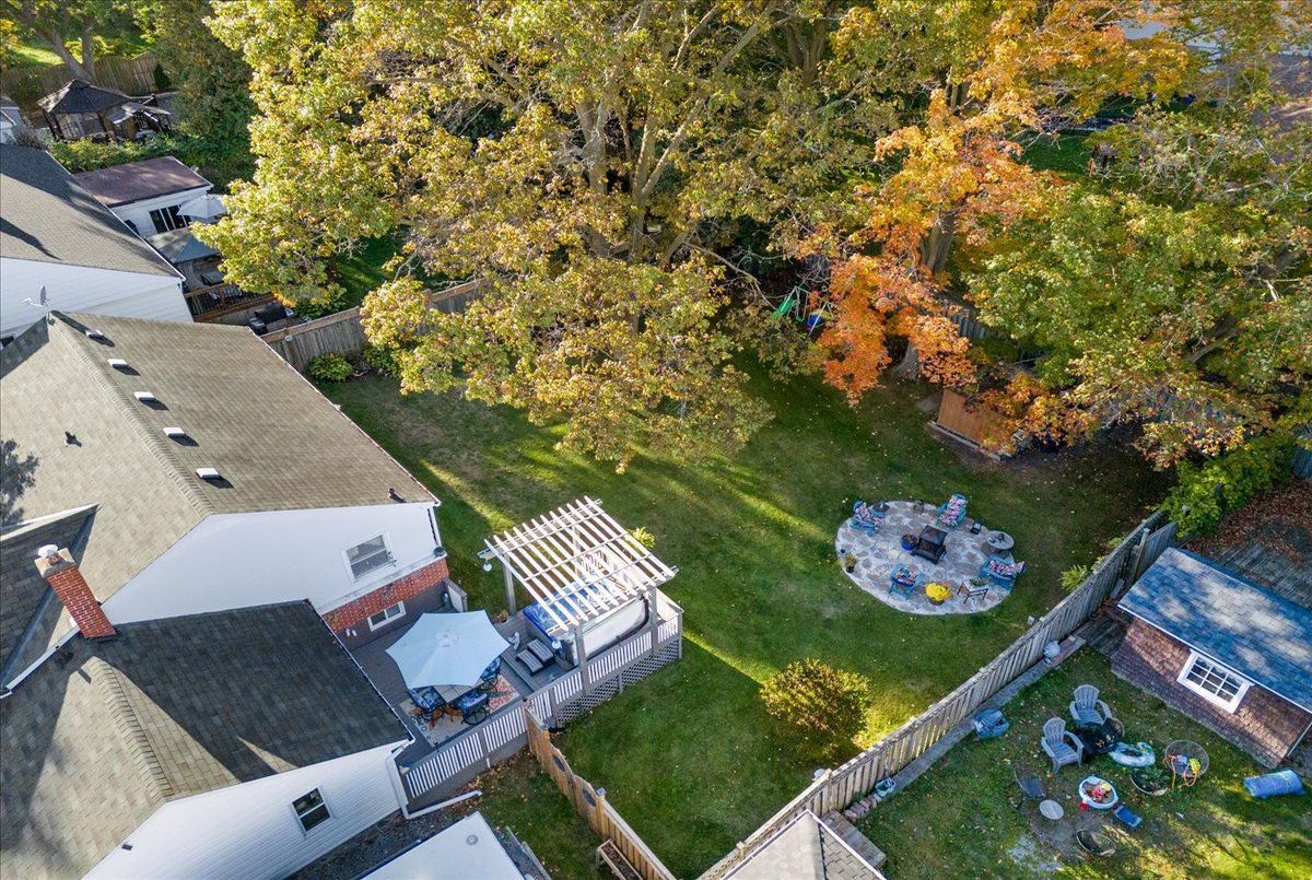 This bungalow in Bowmanville sits on an impressive 75 x 130 ft lot surrounded by mature trees, offering fantastic curb appeal and a welcoming front porch to enjoy your morning coffee. With over 1,100 sq. ft. of living space, the home features fresh paint throughout, a stylishly updated kitchen, and separate living and dining rooms perfect for family gatherings. The finished basement, with its own entrance, adds versatility and includes a spacious rec room, bedroom, 3-piece bath, workshop, and plenty of storage space. Outside, you'll find a fully fenced backyard ideal for entertaining, featuring a large deck with a hot tub, a cozy fire pit area, and lots of room to relax and unwind in a private, park-like setting.