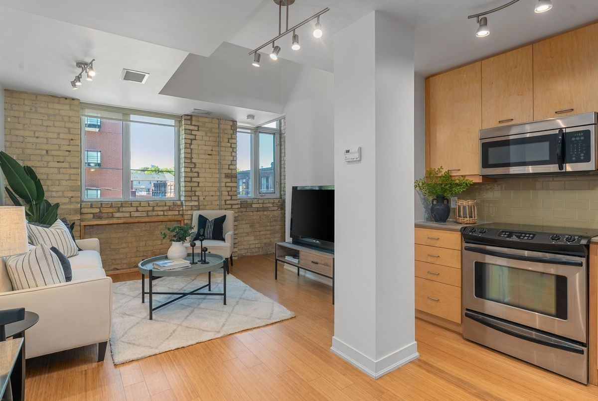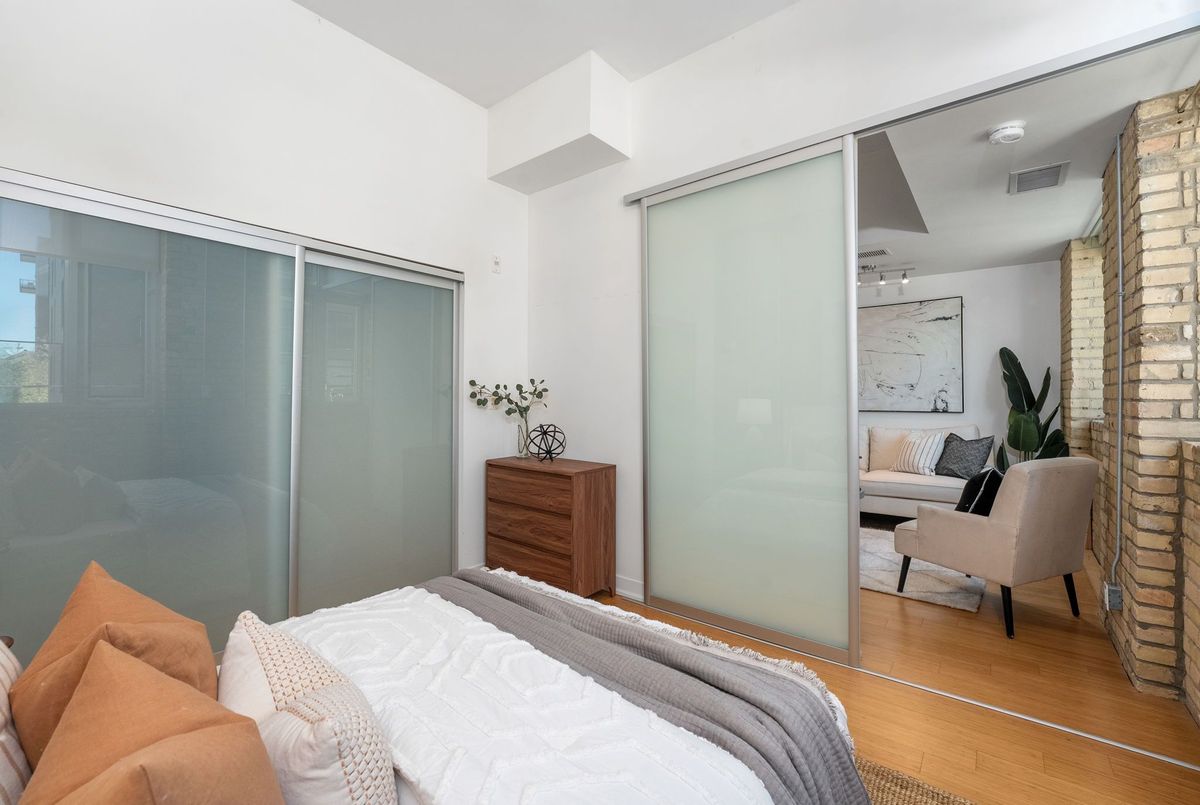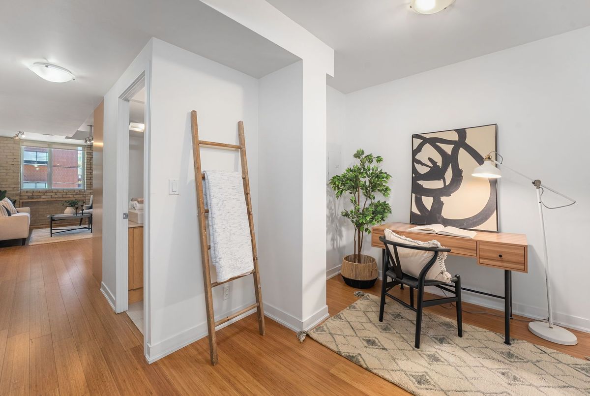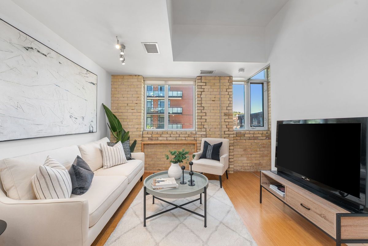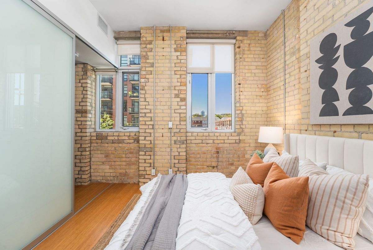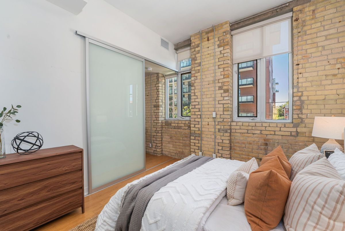 This is the real deal - an authentic conversion loft that checks all the boxes! 1+ Den w/ owned parking and locker included! This prime Leslieville loft in The Printing Factory features original exposed brick, bamboo floors, sunny western exposure, and a completely separate office/den perfect for the busy professional! The layout is smart and functional, featuring an open-concept kitchen with quartz counters and stainless steel appliances, A stacked washer/dryer, and lots of ensuite storage (plus a locker!). Set in the heart of Leslieville at Carlaw and Queen, you'll enjoy vibrant cafés, restaurants, shops, and easy transit at your doorstep, with quick access to downtown, the DVP, and the Beaches. This is authentic loft living, industrial roots blended seamlessly with modern design. ...