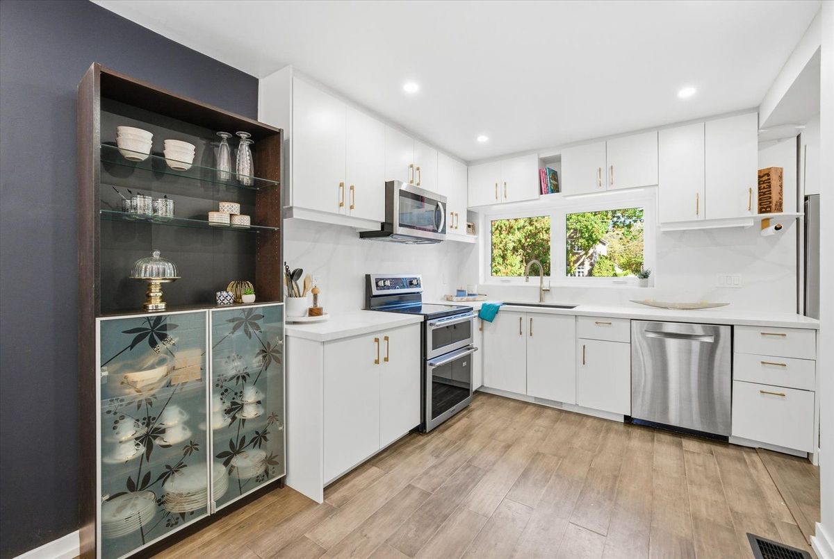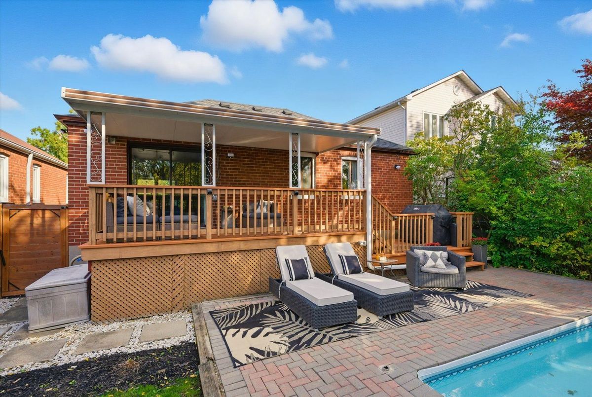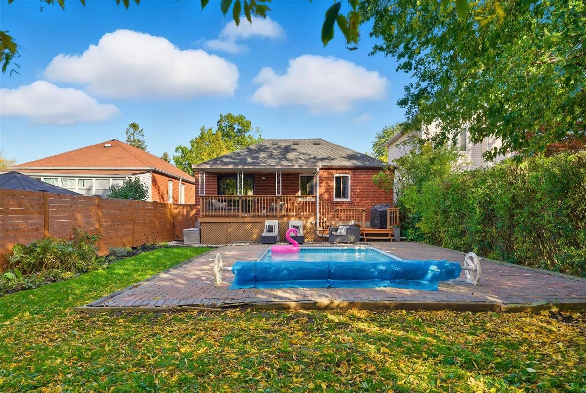 Discover this fabulous oversized all-brick bungalow offering a larger footprint than most homes in the neighbourhood. This well-maintained 2+1 bedroom home combines comfort, functionality, and modern updates throughout. Step into the inviting living room featuring a large picture window that fills the space with natural light and updated laminate flooring-perfect for relaxing or entertaining guests. The family-sized, modern kitchen offers quartz countertops, ample cabinetry with gold accent hardware, stainless steel appliances, and an adjoining dining area with a walk-out to a covered deck-ideal for year-round enjoyment. The main floor includes two bedrooms and a three-piece bathroom with a large walk-in shower. A separate side entrance leads to the lower level, featuring a spacious home office area for remote work, a cozy recreation room with a stunning stone wall-to-wall fireplace, a third bedroom perfect for guests or a growing teen, a two-piece bath, a large laundry area, and plenty of storage space. Outside, enjoy endless summer days in your private backyard oasis complete with a 12' x 24' in-ground pool and sunny western exposure. Conveniently located within walking distance to the GO Train, TTC, located in the Birchcliff Heights P.S. catchment for schools, shopping, and with easy access to downtown-this home truly has it all! The perfect opportunity for first-time buyers or a young family looking to grow in one of Cliffside's most desirable pockets. ...