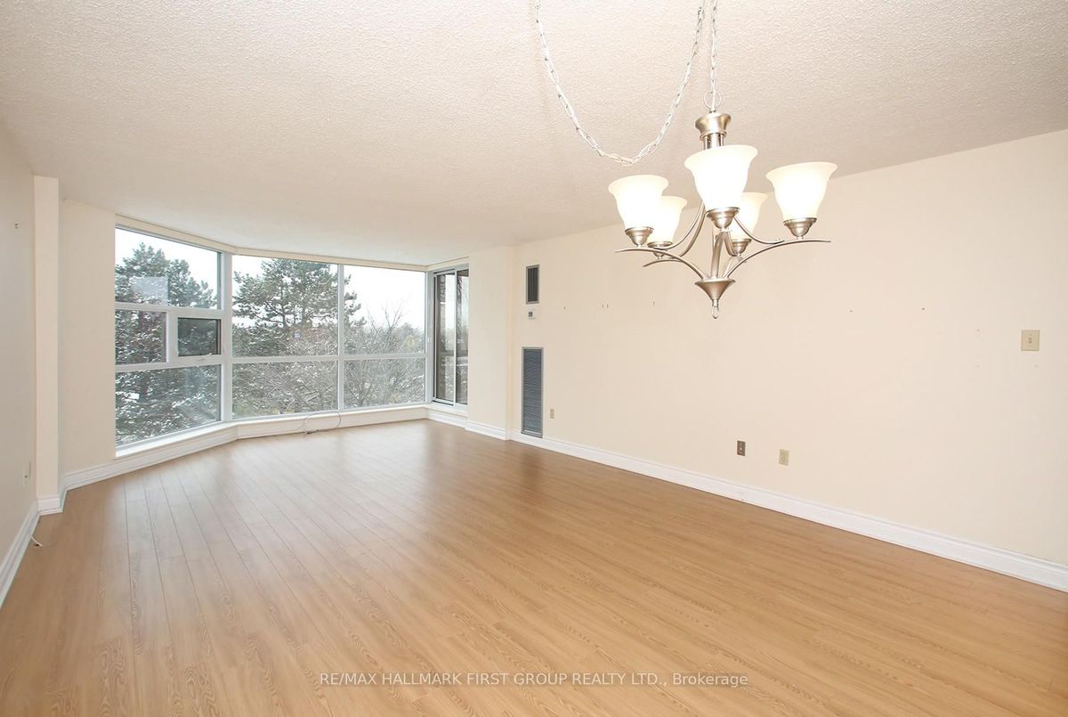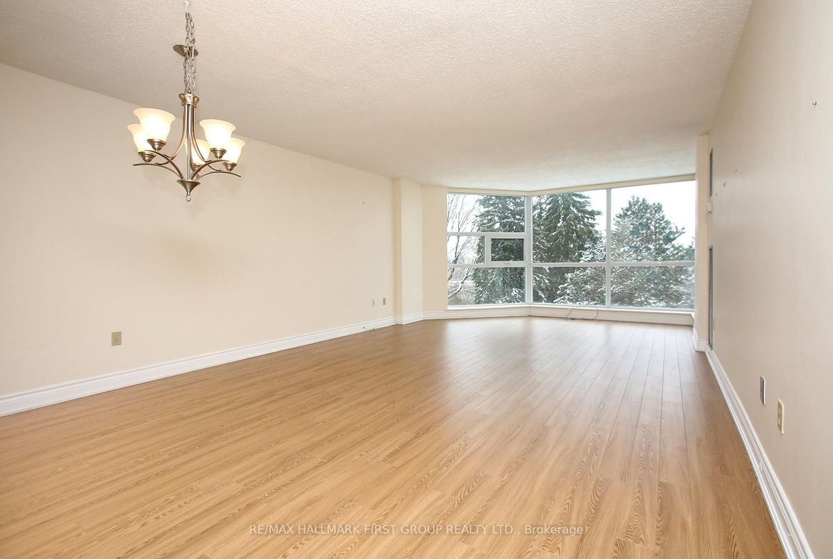LOOK! NEUTRAL TONES & "MOVE-IN" CONDITION! Preferred sunny S.W balcony exposure with floor to ceiling views over manicured gardens. Many upgrades include laminate floors throughout {absolutely no carpeting). Kitchen previously remodeled in soft tones and features a convenient serving pass-through to the dining room. Also a recessed kitchen ceiling feature. This suite is conveniently located on the 4th floor and is very handy for the elevators. The entire suite is in virtually mint condition - having been maintained by a fastidious owner for the past twelve years. This spotless, financially solid complex has a large reserve fund and has never had a Special Assessment Also features a very nice mix of friendly, polite residents and various group activities, incl Christmas wine & cheese party and summer B.B.Q. Well located with easy access to city & country, and excel recreation opportunities. Really Nice!! [Excellent security, live 24/7 patrols, cameras in common elements, garage, all residential hallways and video monitoring. ]