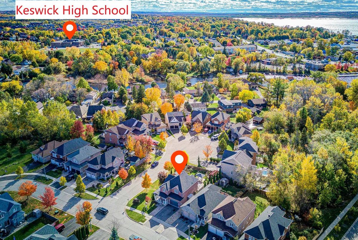 An excellent combination of space, comfort, and lifestyle! Beautifully maintained 4 + 1 bedroom detached home on a premium corner lot in a quiet, sought-after Keswick community. Bright, spacious, and functional open-concept layout with large principal rooms, perfect for family living. The second floor offers four good-size bedrooms, including a generous primary with ensuite and walk-in closet.The finished basement features a wet bar, one bedroom, a recreation area, and a storage room easily convertible into another bedroom - offering excellent in-law suite or rental potential. A stand-alone shower has been added in the basement utility area for convenience. Ideal for a large family or live-and-rent setup to help reduce housing costs. Enjoy great privacy, curb appeal, and a landscaped yard ideal for gatherings.Backyard includes two versatile sheds - one newly renovated and the other a quality aluminum unit (approx. $2,000 value). Both can be converted into workshops or even a sauna. Yard also features fruit trees (4 cherry, 1 apple, 1 plum) for the new owner's enjoyment.Recent upgrades and inclusions: window coverings; water purifier with mineral add-on; water softener; aluminum shed; renovated shed; newer garage door opener; chandeliers; metal-roof gazebo; third shed; heat-pump A/C; Ecobee thermostat; hot water tank (2023); A/C system (2024); attic insulation upgraded to R50 (2024).Minutes to Lake Simcoe for boating and ice-fishing in winter. School bus picks up and drops off at your doorway. Only 45 mins to Toronto and 20 mins to Southlake Hospital. Close to golf courses, Keswick MURC, schools, parks, restaurants, marina, and Keswick Business Park. Easy access to Hwy 404.