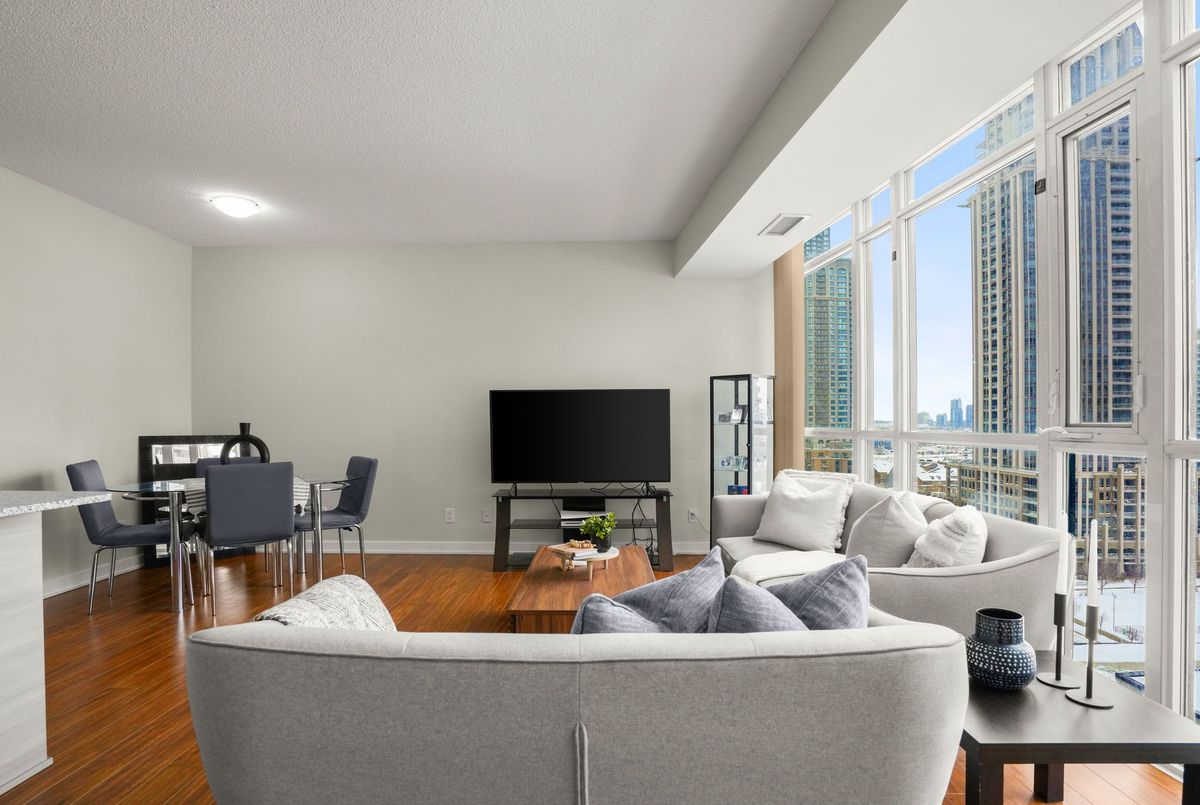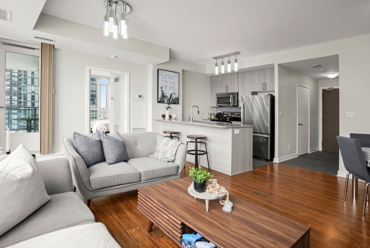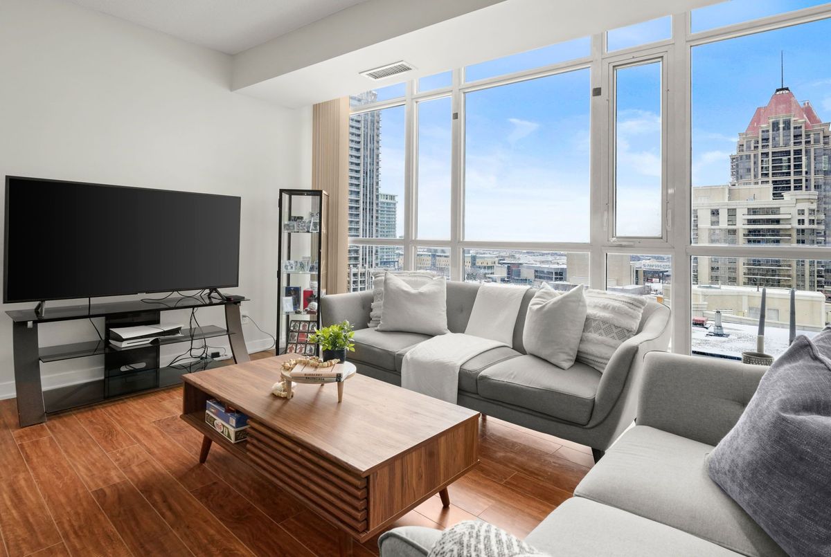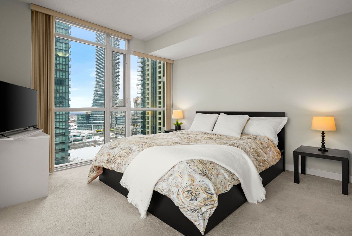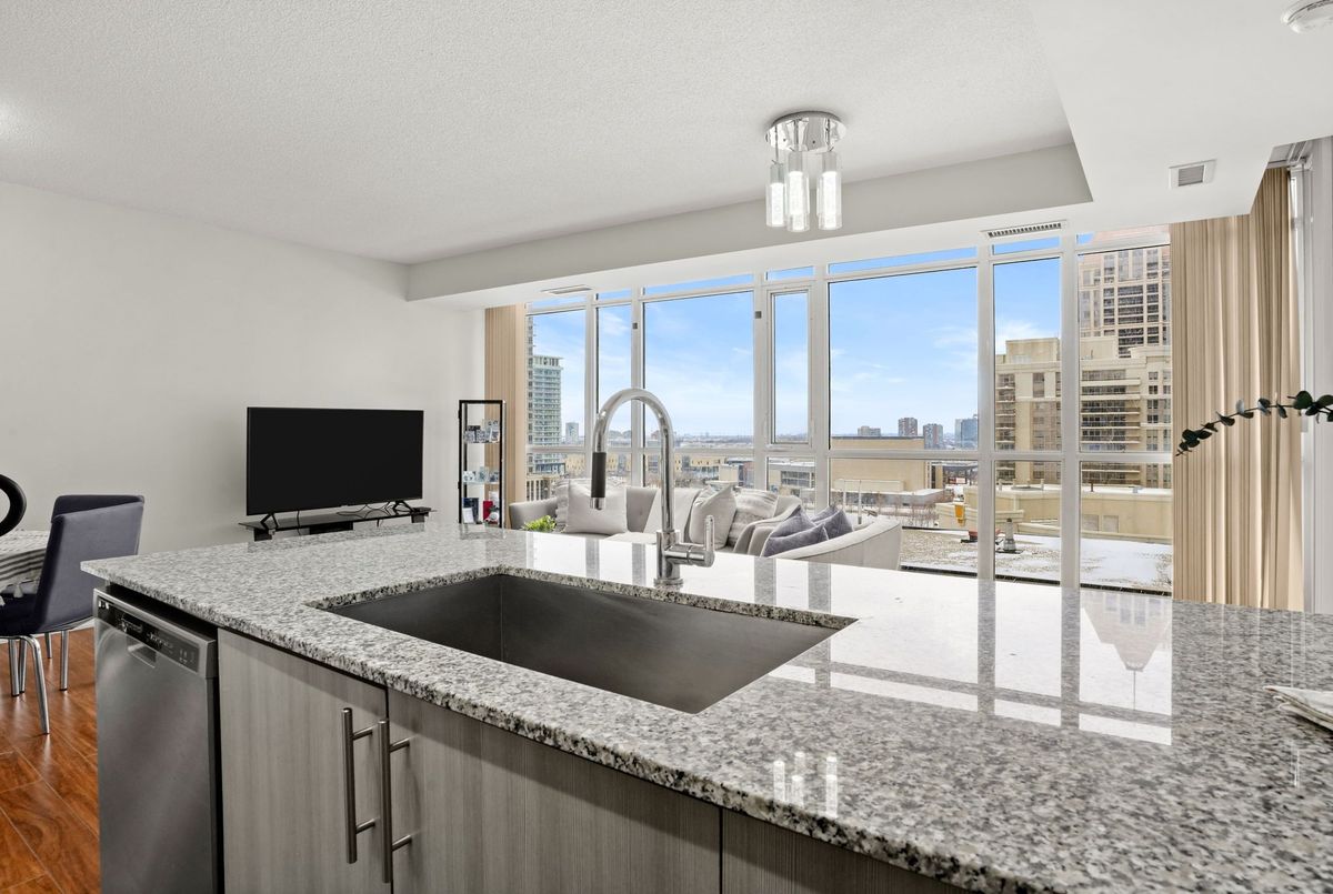 Experience carefree, luxury living in the heart of Parkside Village with this bright and beautifully laid-out corner suite offering stunning, unobstructed east-facing views from the 11th floor. With expansive windows throughout, this open-concept home is flooded with natural light and feels both airy and inviting.The thoughtfully designed layout features a spacious living area with flexible space for dining, a home office, or entertaining, making it ideal for today's lifestyle. The upgraded kitchen is finished with granite countertops, stainless steel appliances, and a breakfast bar-perfect for casual meals or hosting friends.The generously sized bedroom includes a walk-in closet for ample storage, while the real standout is the extra-large balcony, offering a seamless extension of your living space-ideal for morning coffee, evening relaxation, or enjoying city and courtyard views.Residents enjoy access to world-class amenities including an indoor pool, gym, games room, 24-hour concierge, and indoor/outdoor entertaining spaces with BBQs and prep kitchen access, all surrounded by beautifully landscaped gardens. The unit also includes an underground parking space conveniently located near the entrance and a storage locker.Step outside your door to Starbucks, dining, spa services, and everyday conveniences located right within the building. With Square One, Celebration Square, Cineplex, Rec Room, transit, and endless entertainment just steps away, this is urban living at its finest in one of Mississauga's most vibrant neighbourhoods.