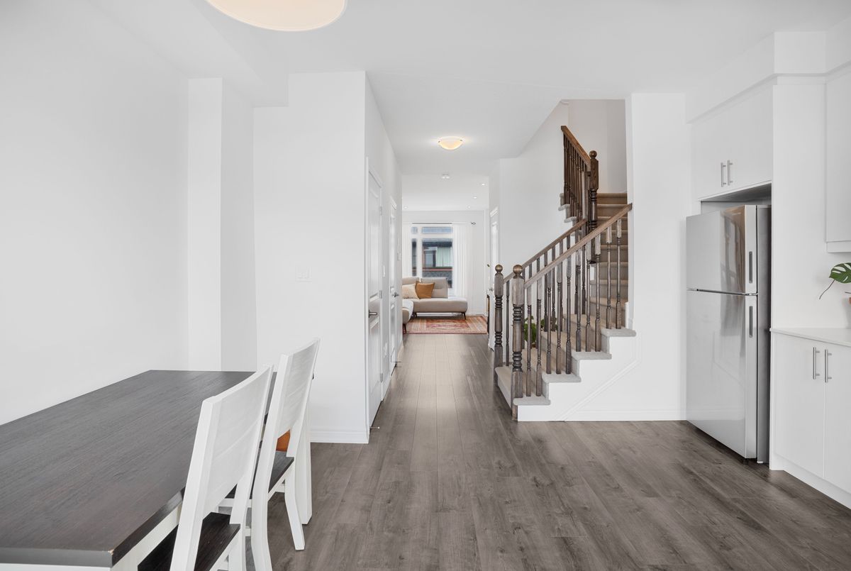 Welcome to this Freehold 3-Bedroom, 2-Bathroom Townhome in beautiful Paris, Ontario  The main level features a bright and inviting living area, an open-concept modern kitchen with walkout to the deck, plus the convenience of main-floor laundry and a powder room. Upstairs you'll find 3 bedrooms and 2 full bathrooms, including a primary suite with its own walk-in closet and private ensuite. The basement offers a versatile space with direct access to the garage as well as a walkout to the backyard, making it ideal for extra living, storage, or a home office. Located close to shopping plazas, sports complexes, parks, and just minutes from Highway 403, this home combines comfort, style, and convenience in one of Ontario's most charming communities.