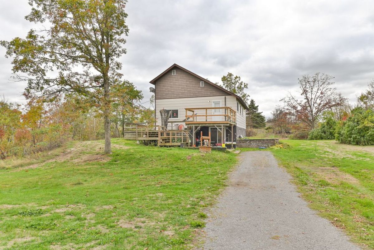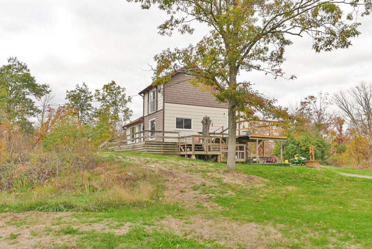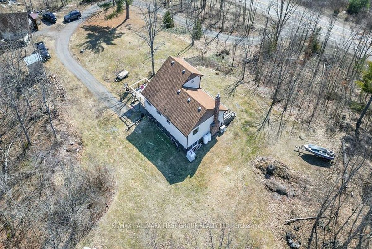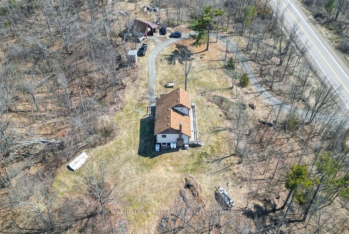 PRIVATE COUNTRY SETTING! Wow imagine being secluded on a quiet 2 ACRE lot with NO neighbours overlooking? Enjoy the spectacular hill top view from this lovely home. Must see this unique design, features spacious 4 Bedrooms & 3 Baths. Functional layout, main level has eat in kitchen and cozy living room with propane fireplace & 2 main floor bedrooms and laundry. Upper level features Primary bedroom loft with 2 PC bath and a Juliette balcony. Lots of space on the lower level with a finished rec room area & nice walk-out to patio. Spacious deck in front for entertaining! Plus extra bonus for the handyman, you'll love the detached garage with workshop area & loft, great storage for the toys. Efficient heating & cooling with heat pump. Also includes back up plug for generator. This immaculate home was freshly painted throughout, shows well! Good location on Highway #7, close to Village of Tweed 2 hours to GTA or Ottawa! This fantastic property is value packed- a must see, won't last long! ...