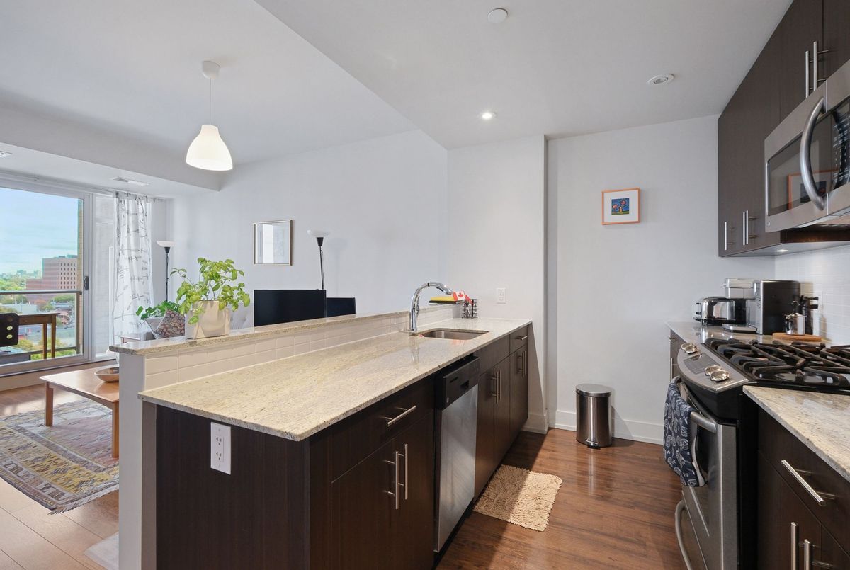 Bright, comfortable, and perfectly placed in Little Italy. Suite 706 at HOM by Domicile is a one-bedroom with real living space and an easy, city-ready routine. This unit comes with one parking spot and one storage locker. Morning light pours across the open living and dining area through large windows, while hardwood floors keep the space warm and cohesive. The kitchen is larger than most condos in this price range, with full-height cabinetry, a gas range, stone counters, tile backsplash, and an island that works for prep, coffee, and casual meals. The bedroom is quietly tucked away for restful nights, and the full bath and in-suite laundry keep day-to-day life simple. Step outside to a private balcony with open urban views that stretch across the neighbourhood.Life at HOM adds practical amenities you will actually use. Work out in the fitness room, meet friends on the outdoor terrace with barbecue stations, and book the lounge with a kitchen when you want to host. There is also secure bike storage for weekend rides.The location is the point. You are a short walk to Preston Street with cafes, bakeries, and restaurants for every mood. Dows Lake and the Rideau Canal are close for runs, paddles, skating, and festivals that mark every season. Commuting is simple without relying on a car. The Hickory Street footbridge connects you to the O-Train, with paths and bike routes all around.If your version of Ottawa living is an espresso on Preston, a loop around the lake, and an easy ride to the office, this home fits the rhythm. A bright one-bedroom with a big kitchen, natural light, large windows, hardwood floors, a balcony, and views, set in a quiet concrete building in one of the city's most loved neighbourhoods. ...
