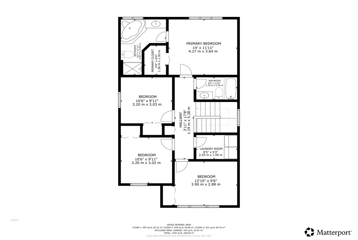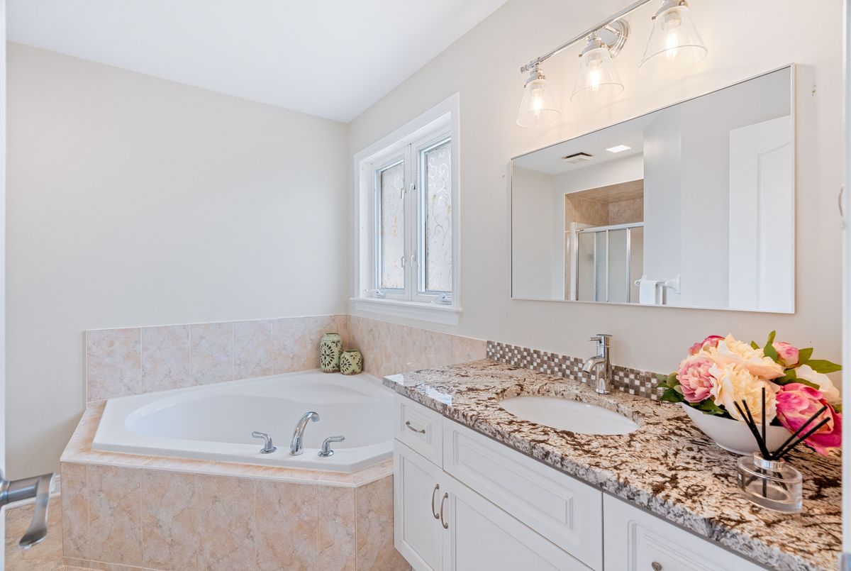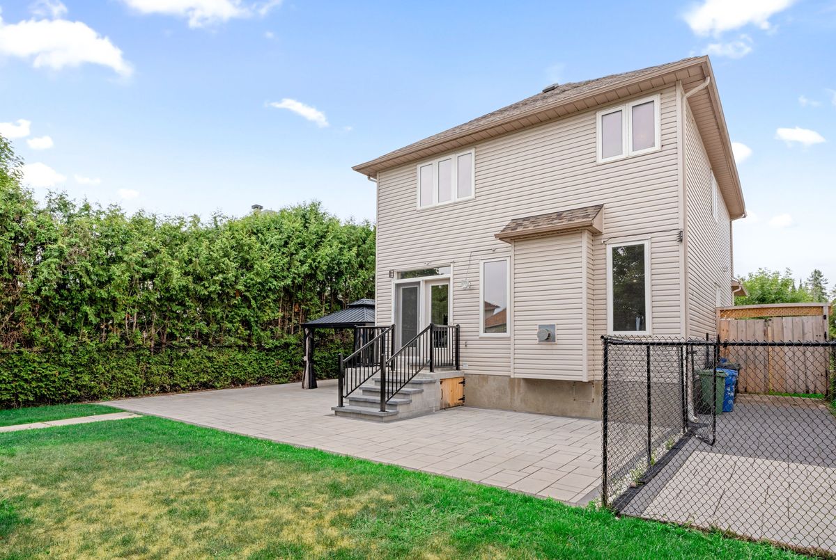 Discover contemporary elegance in this fully upgraded 5-bedroom, 4-bathroom residence, meticulously renovated with 150K in premium improvements. Featuring a fully finished basement, this home offers over 3,000 sq. ft. of total living space-thoughtfully designed for comfort, functionality, and style. From the moment you enter the welcoming foyer, you'll appreciate the attention to detail and the seamless blend of modern finishes and timeless charm. The main floor features an open-concept living and dining area highlighted by classic wainscoting and elegant design touches. A dedicated main-floor office provides an ideal space for remote work, while the cozy family room with a fireplace creates a warm and inviting atmosphere. The modern eat-in kitchen has been beautifully refreshed with new appliances, including a stove, dishwasher, and microwave/hood fan. Freshly painted cabinetry with updated doors adds a stylish touch, and from here, you can step directly into your private backyard retreat-perfect for entertaining or unwinding. Outdoor living is elevated with interlocked front and rear patios, a hot tub under a gazebo, a fenced dog pan, storage shed, and a trampoline, all included with the home. The backyard is designed for both relaxation and play. Upstairs, hardwood flooring flows throughout, complemented by elegant hardwood stairs. A second-floor laundry room provides convenience, while four spacious bedrooms offer generous space for family and guests. The primary suite is a private retreat, featuring a walk-in closet and a beautifully finished ensuite bathroom. The fully finished lower level expands your living space with a large recreation room, an additional bedroom, a full bathroom, and ample storage-ideal for a growing family, overnight guests, or a home gym. Additional highlights include a finished garage with epoxy-coated flooring and a heater, a central vacuum system, and a carpet-free interior for easy maintenance and enduring style.