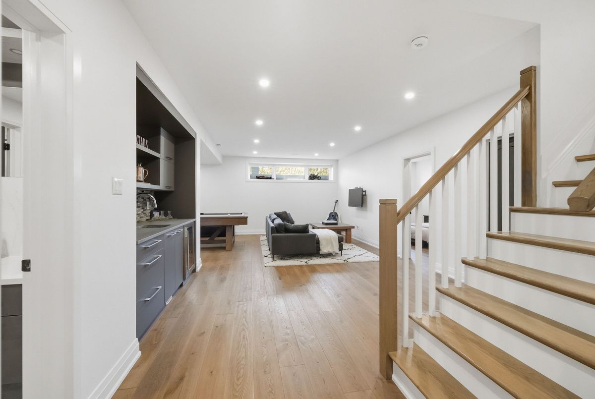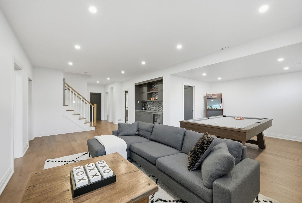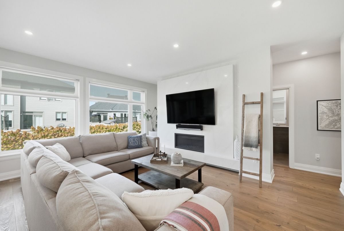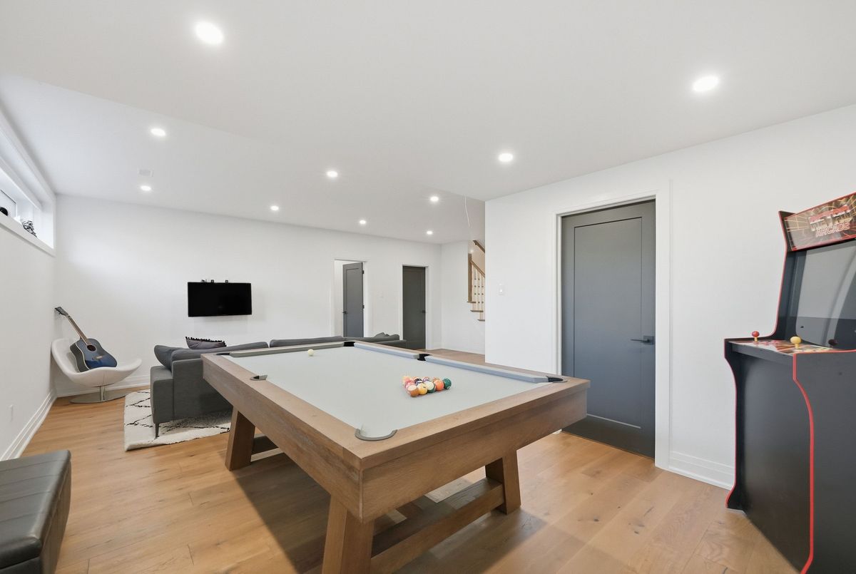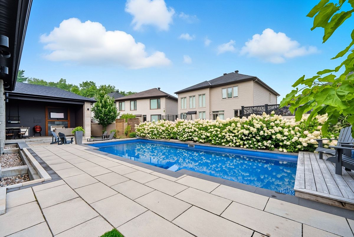 This stunning 5 bedroom home blends architectural sophistication with modern comfort, set in one of Orleans' most prestigious communities of Trails Edge. Its striking stone-and-brick exterior, modern landscaping and triple-car garage make an unforgettable first impression. Step outside to your backyard oasis - an entertainer's paradise featuring an inground pool, sleek stone patio, and a rustic-style covered pavilion with exposed beams, built-in gas BBQ, gas fireplace, TV area, and ample space to dine or lounge in style. Professionally landscaped for elegance and low maintenance, this outdoor retreat is perfect for summer gatherings and entertaining. Inside, rich hardwood flows throughout, complemented by pot lights and expansive windows that flood the home with natural light. The main level features a living room with gas fireplace, a private office with built-ins, and a chef's kitchen designed to impress - high-end appliances, gas stove, oversized island with seating for six, custom drawers, accent wood beams, and a convenient butler style service kitchen with two mini fridges, perfect for coffee, cocktails, or entertaining guests. Upstairs, the lavish primary suite boasts a boutique-style walk-in closet with island and a spa-inspired 5-piece ensuite with soaking tub, glass shower with rain head, and floating dual-sink vanity. Each secondary bedroom offers a walk-in closet and ensuite bath, while a generous laundry room with built-in storage completes the upper level. The finished lower level expands living space with a recreation area, wet bar, two bedrooms, a full bath, and abundant storage, creating an ideal retreat for family and guests. Combining modern elegance, sophisticated living, and exceptional walking access to top elementary and secondary schools, parks, and amenities, this home delivers the ultimate in comfort and style. ...