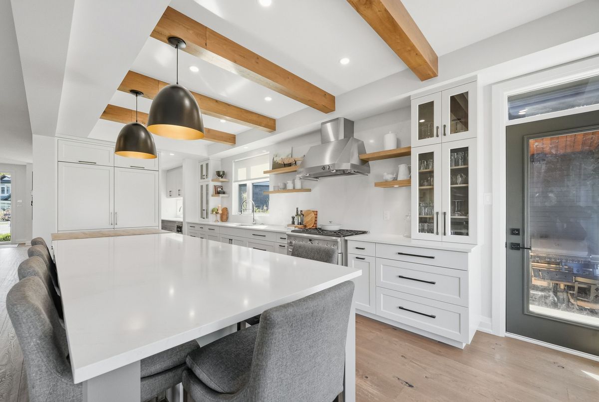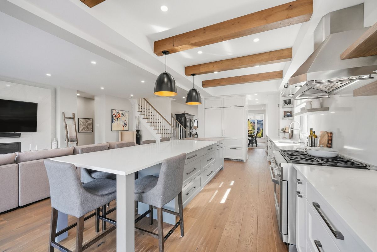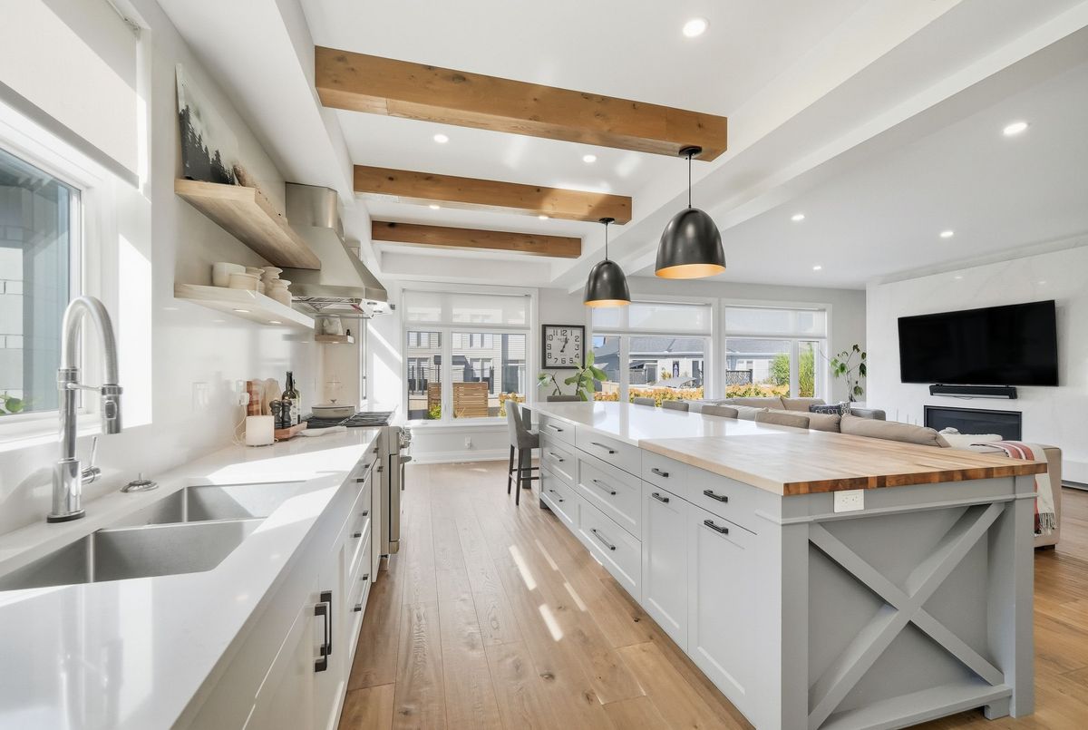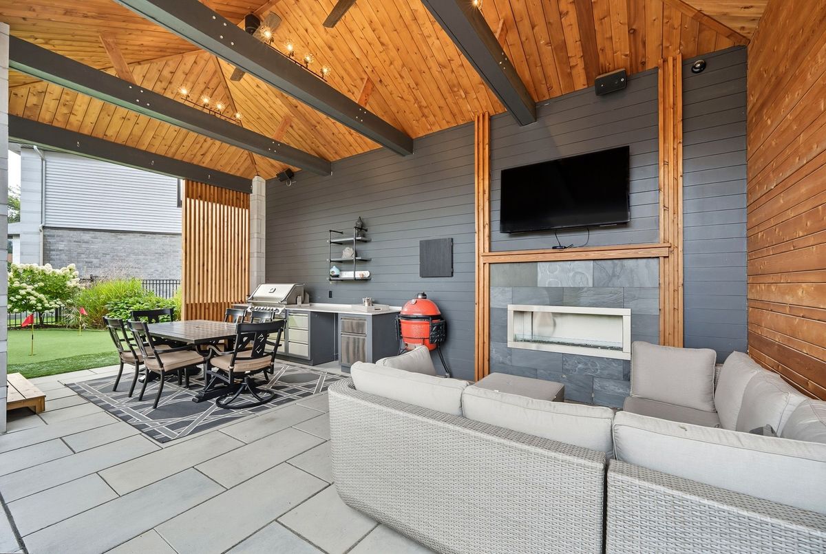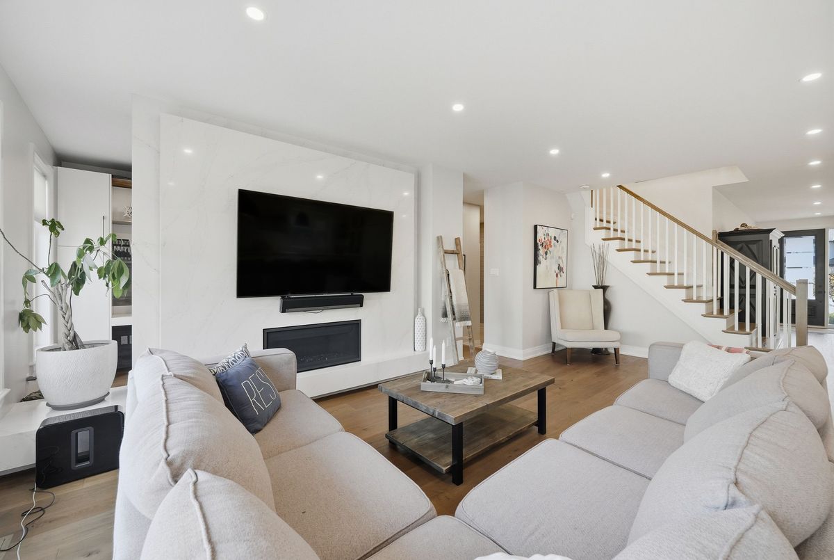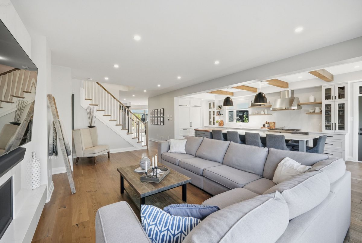 This stunning 5 bedroom home blends architectural sophistication with modern comfort, set in one of Orleans' most prestigious communities of Trails Edge. Its striking stone-and-brick exterior, modern landscaping and triple-car garage make an unforgettable first impression. Step outside to your backyard oasis - an entertainer's paradise featuring an inground pool, sleek stone patio, and a rustic-style covered pavilion with exposed beams, built-in gas BBQ, gas fireplace, TV area, and ample space to dine or lounge in style. Professionally landscaped for elegance and low maintenance, this outdoor retreat is perfect for summer gatherings and entertaining. Inside, rich hardwood flows throughout, complemented by pot lights and expansive windows that flood the home with natural light. The main level features a living room with gas fireplace, a private office with built-ins, and a chef's kitchen designed to impress - high-end appliances, gas stove, oversized island with seating for six, custom drawers, accent wood beams, and a convenient butler style service kitchen with two mini fridges, perfect for coffee, cocktails, or entertaining guests. Upstairs, the lavish primary suite boasts a boutique-style walk-in closet with island and a spa-inspired 5-piece ensuite with soaking tub, glass shower with rain head, and floating dual-sink vanity. Each secondary bedroom offers a walk-in closet and ensuite bath, while a generous laundry room with built-in storage completes the upper level. The finished lower level expands living space with a recreation area, wet bar, two bedrooms, a full bath, and abundant storage, creating an ideal retreat for family and guests. Combining modern elegance, sophisticated living, and exceptional walking access to top elementary and secondary schools, parks, and amenities, this home delivers the ultimate in comfort and style. ...