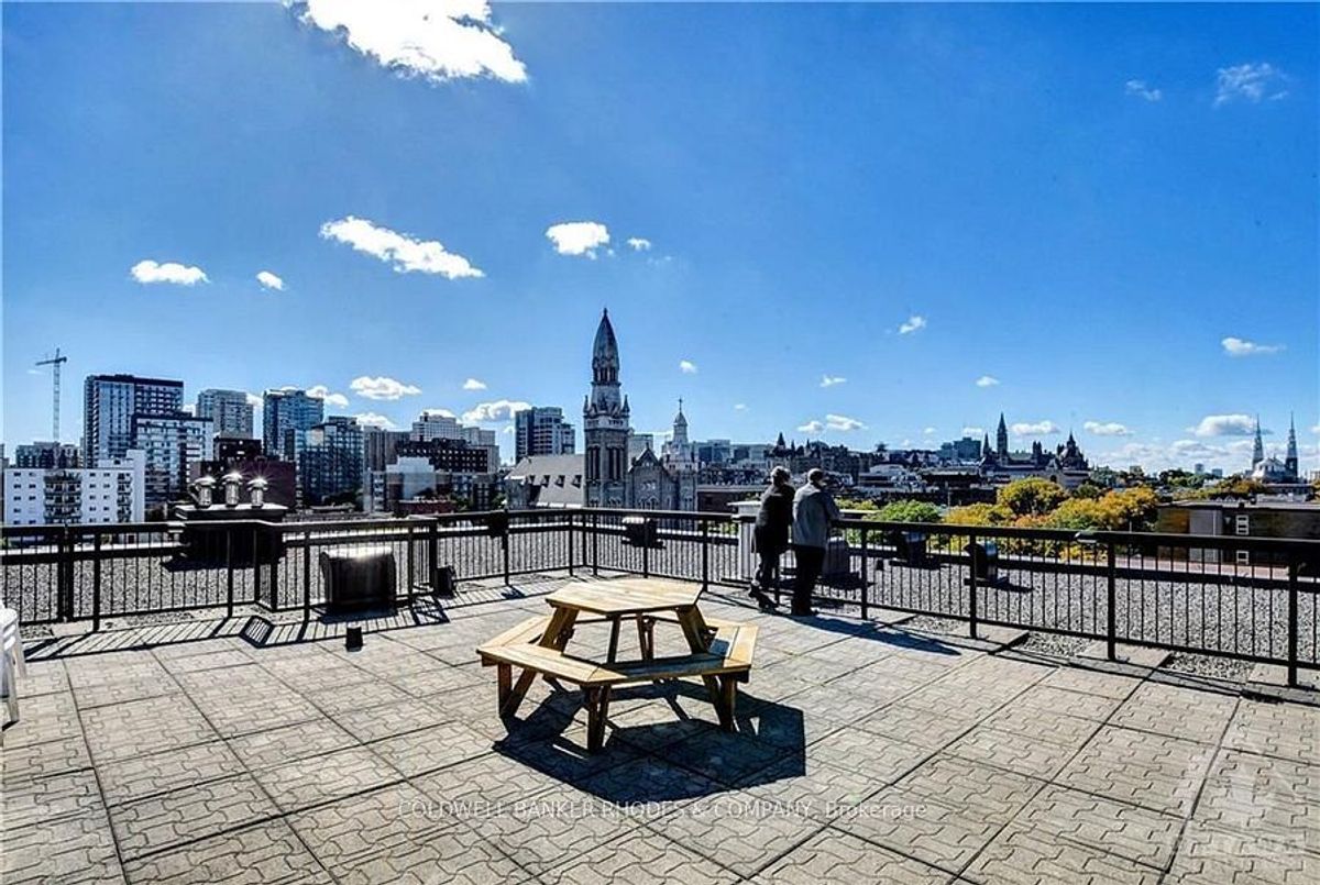 Welcome to unit 504 at 222 Guigues Avenue, a well-designed 2 bedroom, 1 bathroom condo in Ottawa's historic Lower Town neighborhood. At 863 sq.ft., the layout makes good use of every square foot. Hardwood flooring runs throughout, and a wood-burning fireplace adds warmth and character to the main living area. The open-concept design naturally connects the kitchen, dining, and living spaces, making the unit feel larger than its footprint suggests. The updated kitchen features granite countertops, a subway tile backsplash, stainless steel appliances, and a breakfast bar that works equally well for a quick meal or casual entertaining. Patio doors off the living area open to a private balcony with city views; a nice outdoor extension for morning coffee or an evening wind-down. The primary bedroom is generously sized with good closet space. The second bedroom works well as a guest room or home office. The full bathroom has been updated and includes clever built-in storage. In-unit laundry adds everyday convenience. The building offers a rooftop terrace with panoramic views of Parliament Hill and the city skyline, one of the better shared amenities you'll find at this price point in the area. One underground parking space and a storage locker are included. Tucked on a quiet cul-de-sac, yet steps from the ByWard Market, Global Affairs, the NAC, restaurants, cafes, and transit. The Ottawa River pathways, Gatineau Park, and Highway 417 are all easily accessible. A practical and well-located unit in one of Ottawa's most walkable neighborhoods.